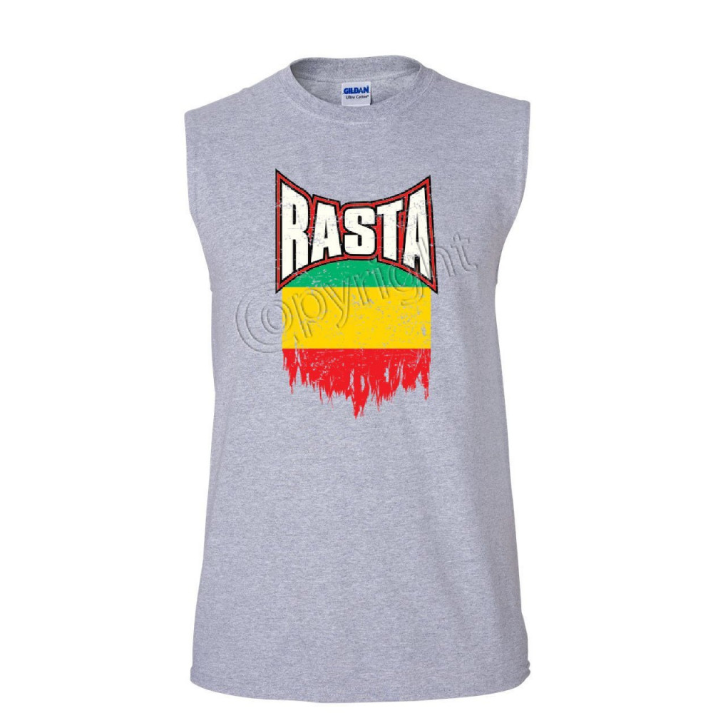 DISTRESSED RASTA FLAG muscle shirt smoking 420 reggae marijuana weed sleeveless gray