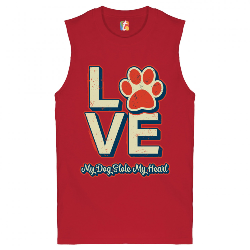 DOG PAW LOVE muscle shirt my dog stole my heart pet owner animal lover men's red