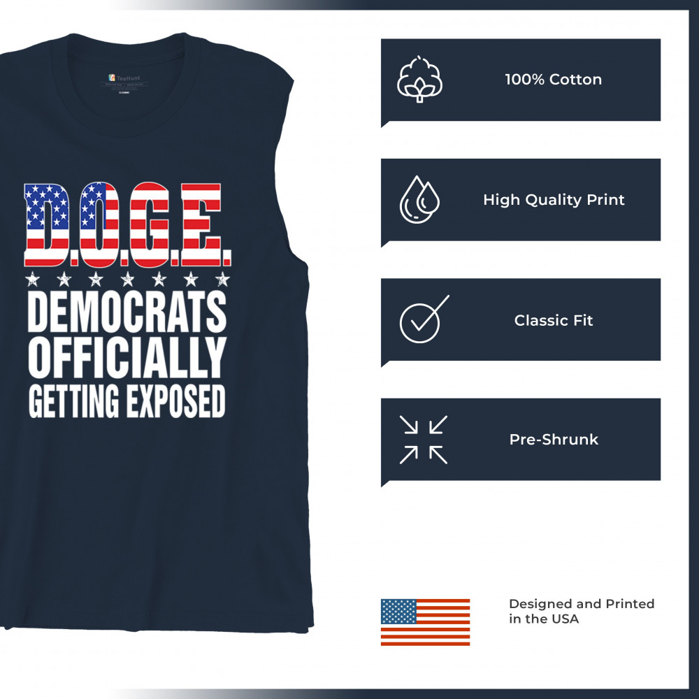 The D.O.G.E. Democrats Officially Getting Exposed design features bold text packed with patriotic flair and political edge. Stars-and-stripes fill the acronym while the clean layout delivers a direct anti-liberal message. Ideal for conservatives, libertarians, and free-speech defenders at rallies, campaign events, or daily wear.
