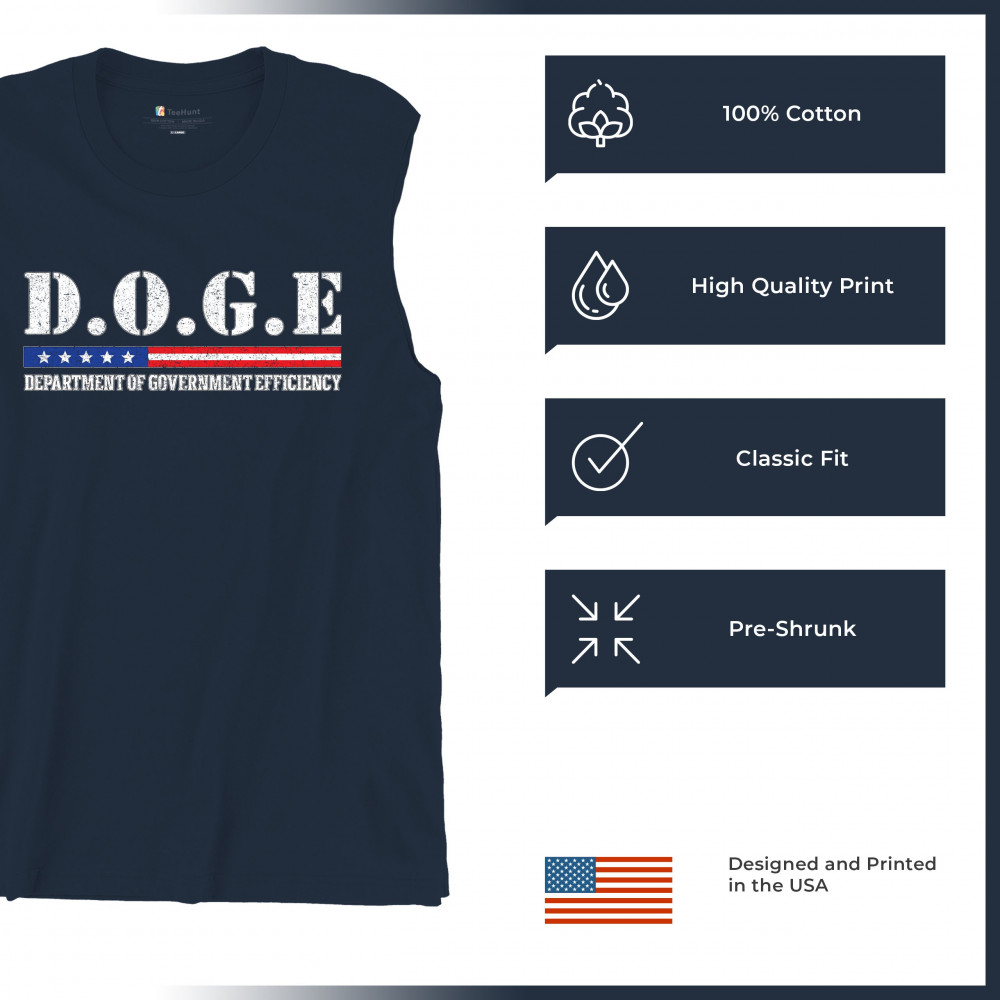 The D.O.G.E. – Department of Government Efficiency design brings gritty patriotism and satire together in a bold statement. With distressed typography, red, white, and blue stars and stripes, and a message that resonates with liberty lovers, it's ideal for conservatives, libertarians, and reform advocates at political events, rallies, or everyday wear.