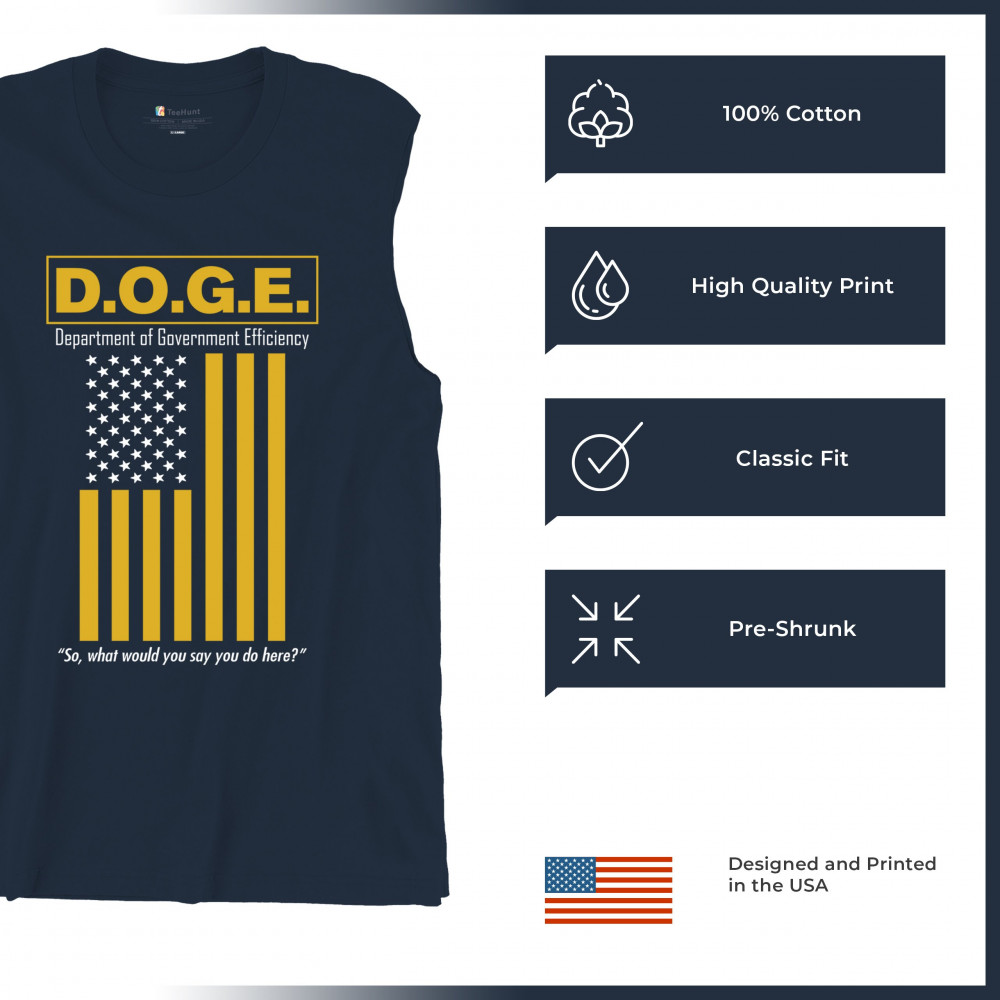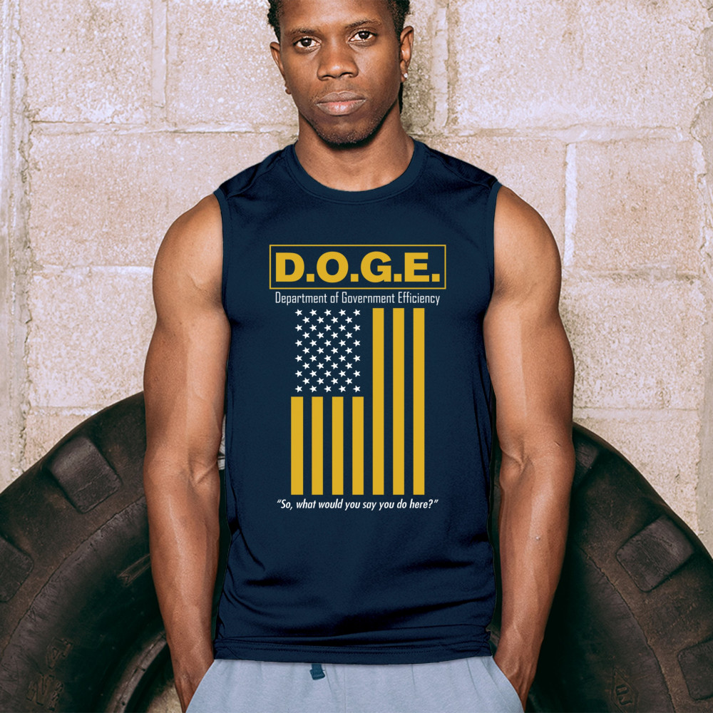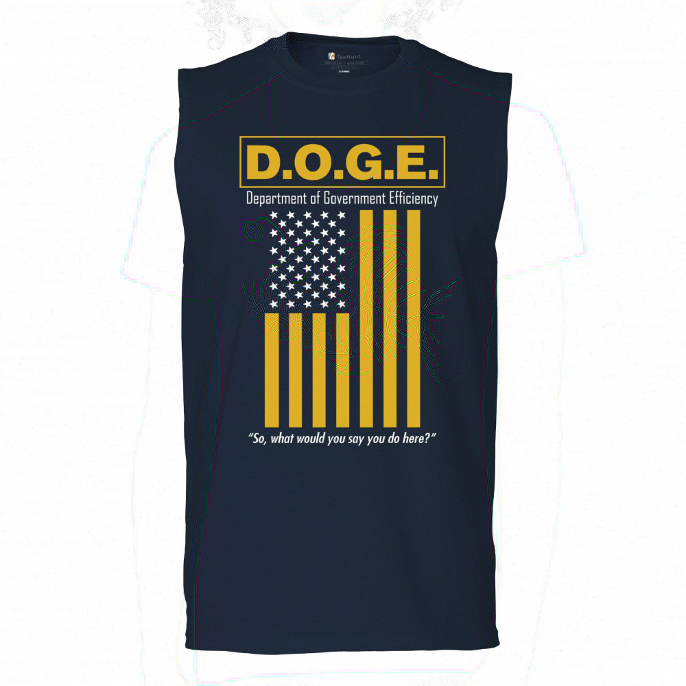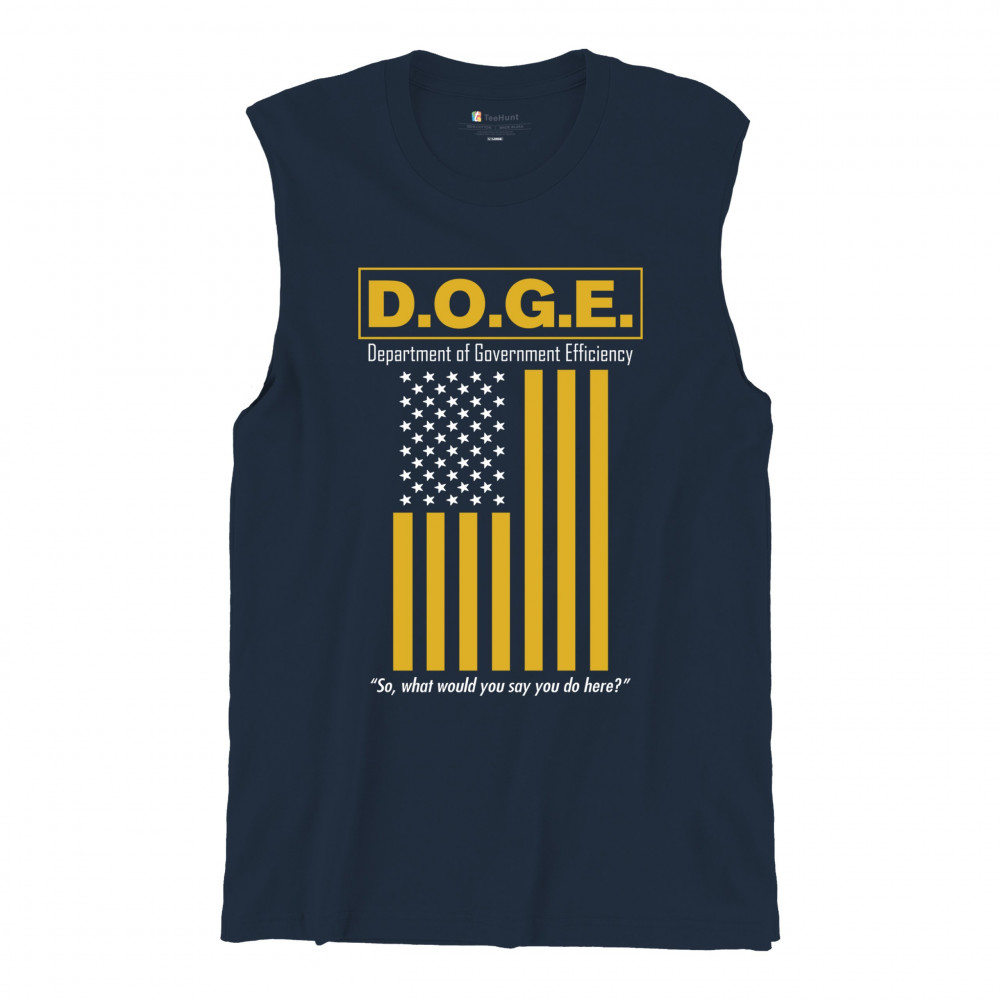 The D.O.G.E. Department of Government Efficiency design features bold yellow lettering and a sarcastic punchline aimed at bloated systems. Clean typography paired with a reimagined American flag gives this political parody retro appeal. Ideal for libertarians, patriots, or anyone fed up with inefficiency and red tape.