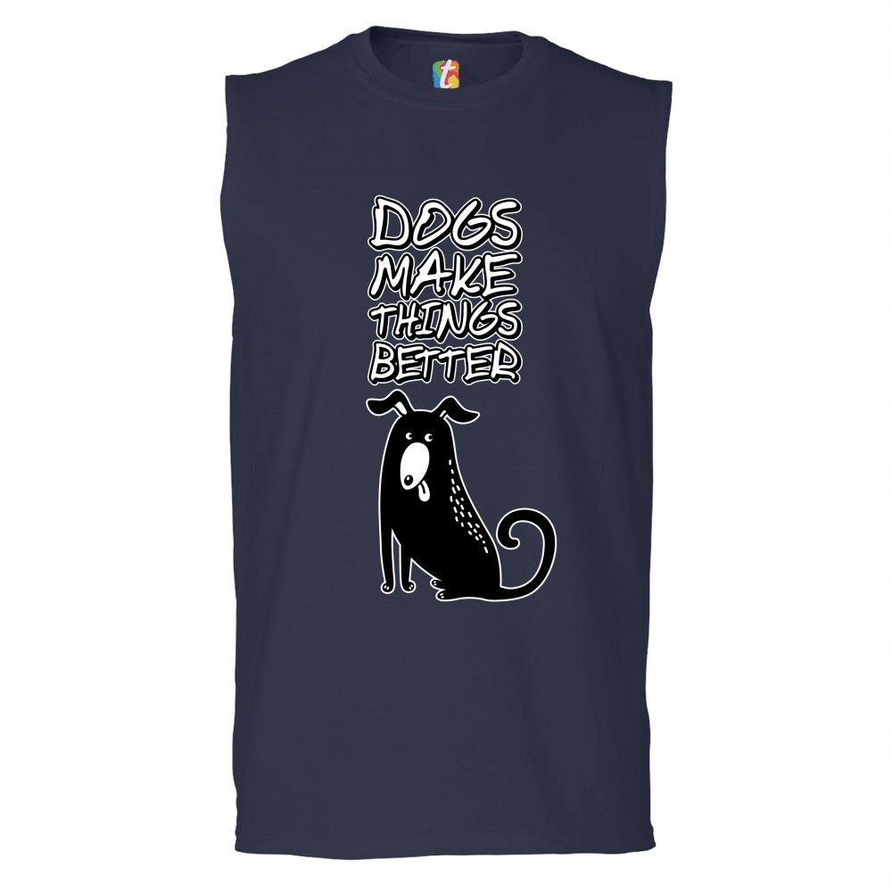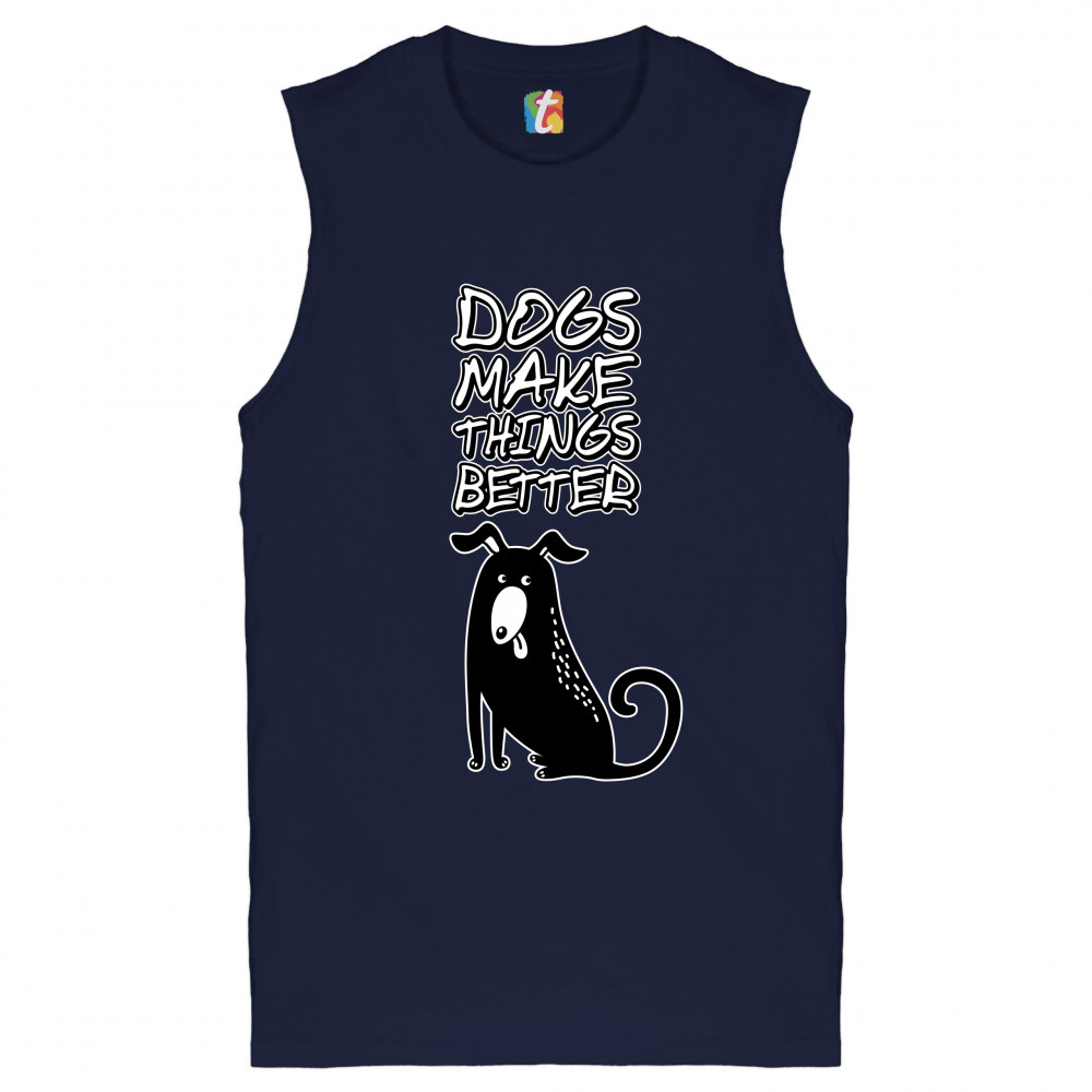 DOGS MAKE THINGS BETTER muscle shirt animal pet owner i love my dog men's navy blue