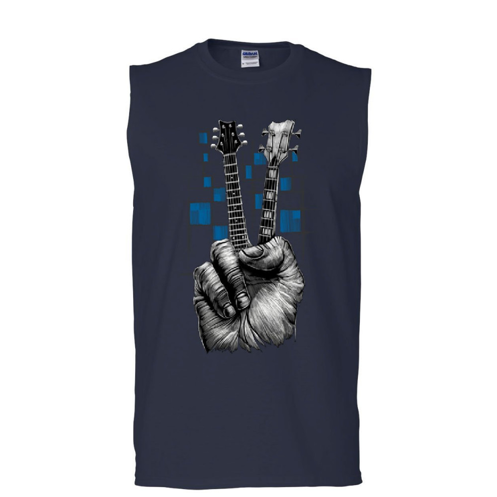 DON'T FRET GUITAR muscle shirt rock & roll musician peace sign music sleeveless navy blue