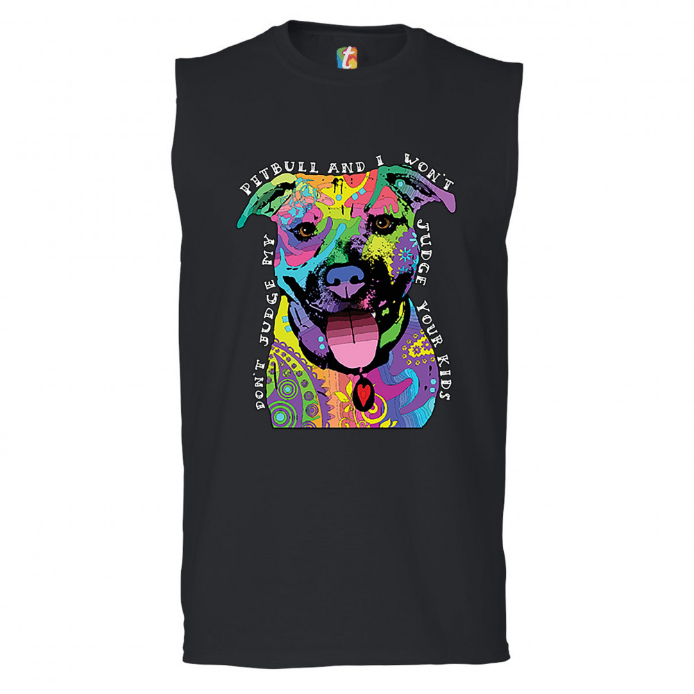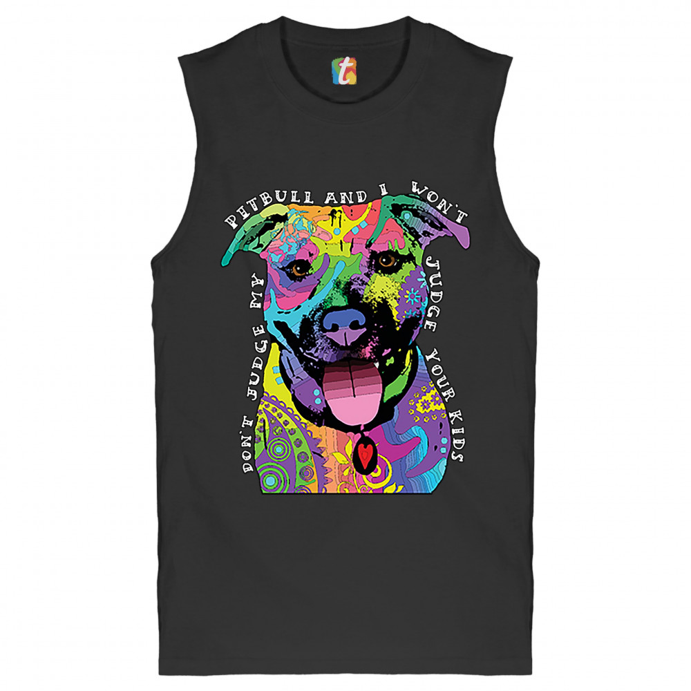 DON'T JUDGE MY PIT BULL muscle shirt funny andy maxx dog lover pet owner men's black