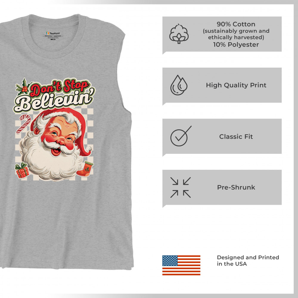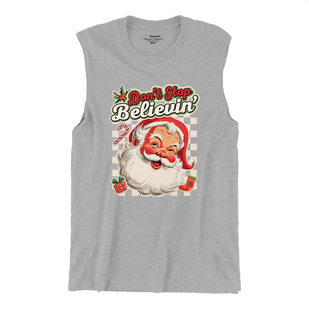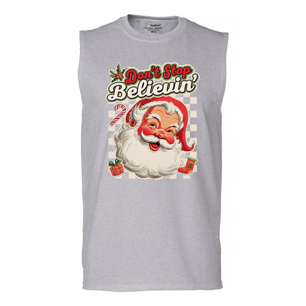 Spread holiday cheer with this “Don’t Stop Believing†Santa Claus shirt that blends classic Christmas spirit with cozy winter charm. Perfect for festive parties, family gatherings, or relaxing by the fire, this design captures Jingle Bells joy, Merry Xmas fun, Santa Claus magic, Reindeer delight, Rudolph glow, Snowman charm, and Christmas tree style for the perfect seasonal outfit.