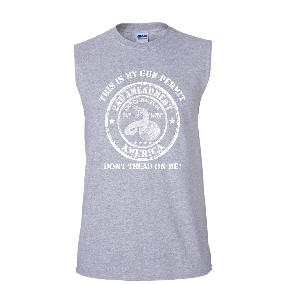 DON'T TREAD ON ME MY GUN PERMIT don't tread on me muscle shirt 2nd amendment gun permit gun rights 2a sleeveless gray