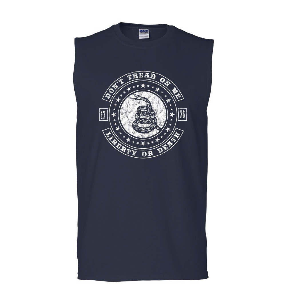 DON'T TREAD ON ME LIBERTY OR DEATH don't tread on me muscle shirt liberty or death gadsden rattlesnake sleeveless navy blue
