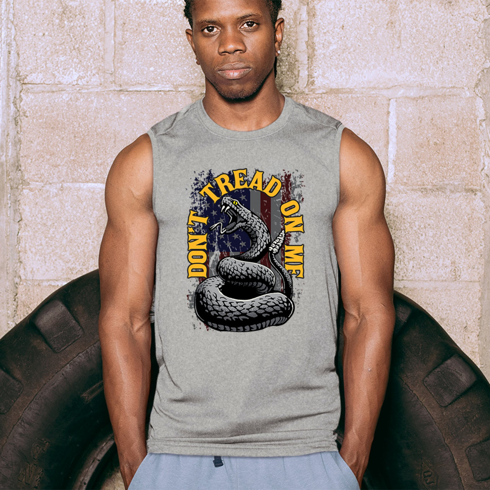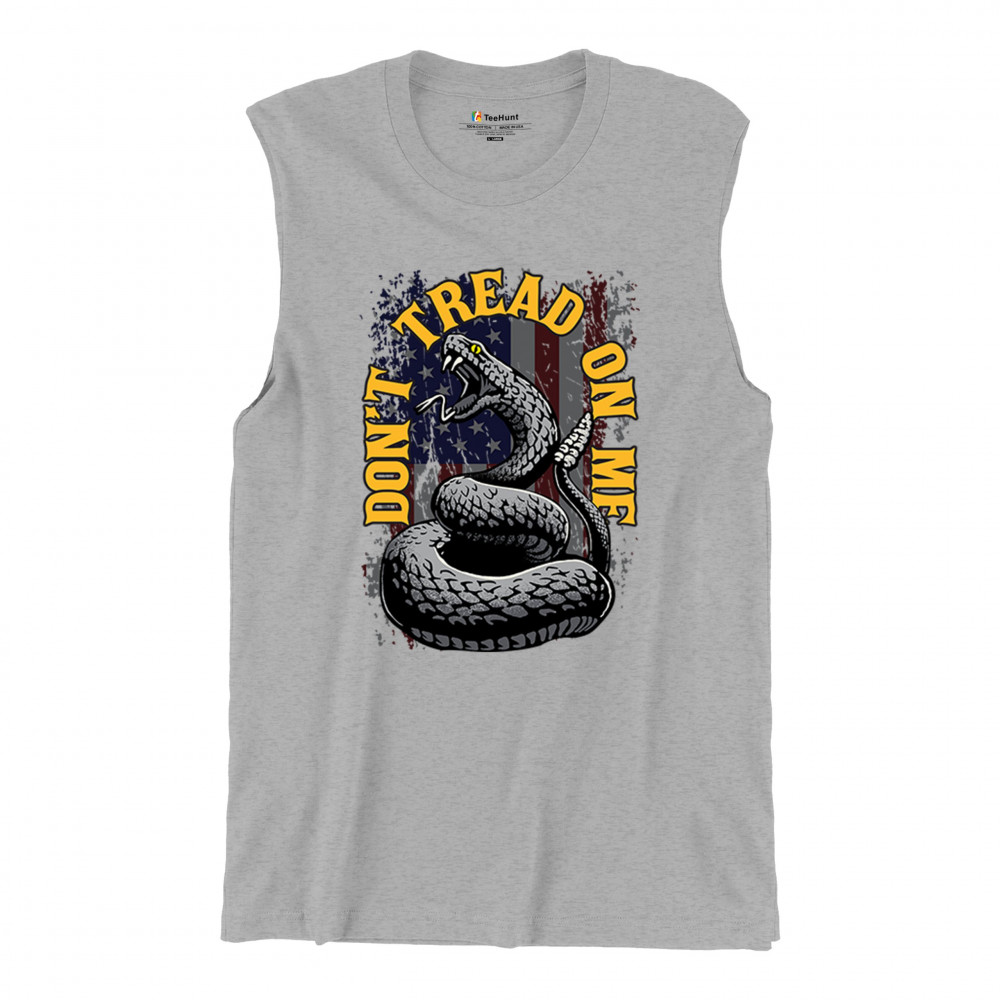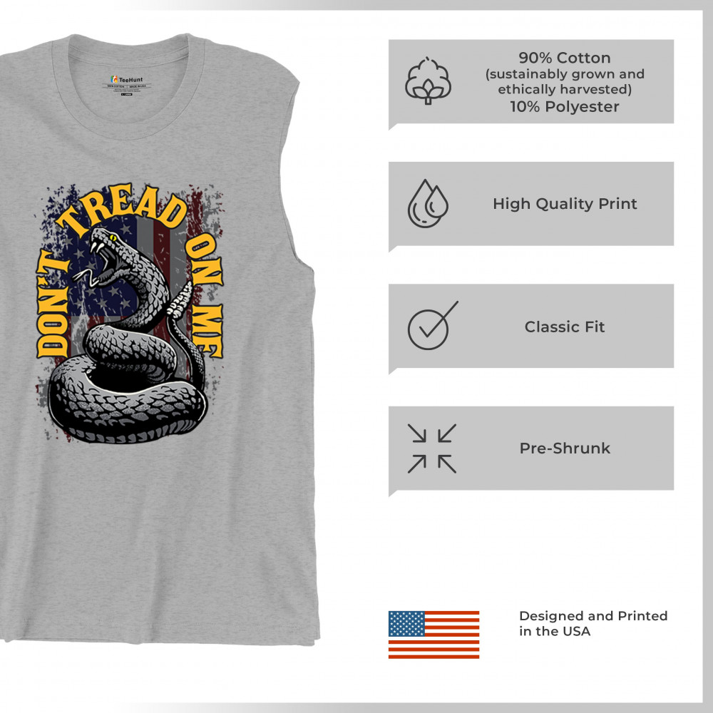Bold "Don't Tread on Me" design with snake and American flag. Ideal for patriots. Show your love for freedom and independence.
