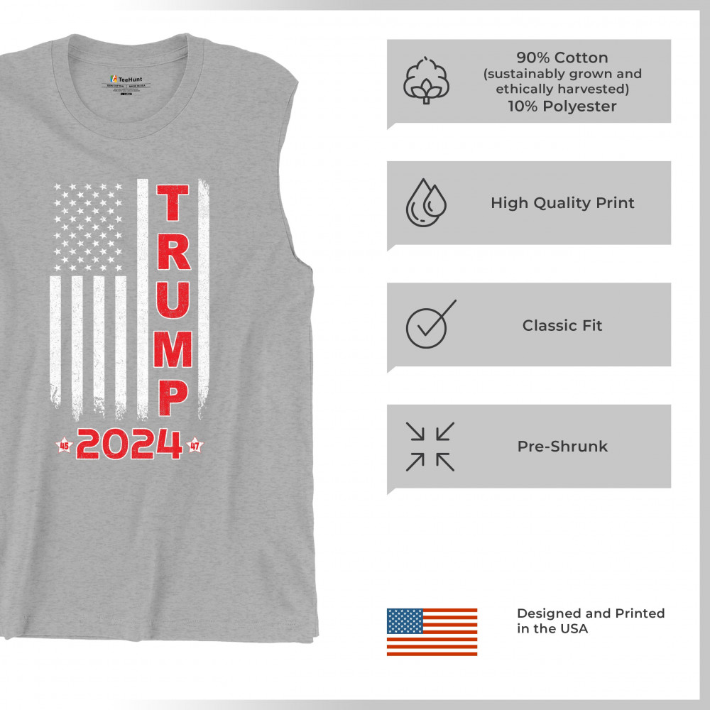 Gear up for the next chapter in American history with our Trump American Flag 2024 design, a bold statement of unwavering support for America First values. Featuring the iconic American flag intertwined with a vintage Trump silhouette, this design is a mu