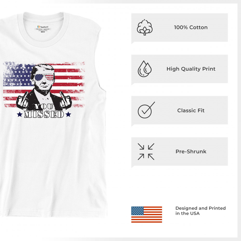 Embrace the spirit of patriotism and resilience with this powerful design showcasing Donald Trump in bold American flag sunglasses. Ideal for Trump rallies, political gatherings, and other patriotic events, this graphic is perfect for conservatives and Republicans alike. Show your unwavering support for Trump and the belief in making America great again. This striking design is not only a great addition to your wardrobe but also an excellent gift for fellow supporters. Wear it with pride and join the movement today.