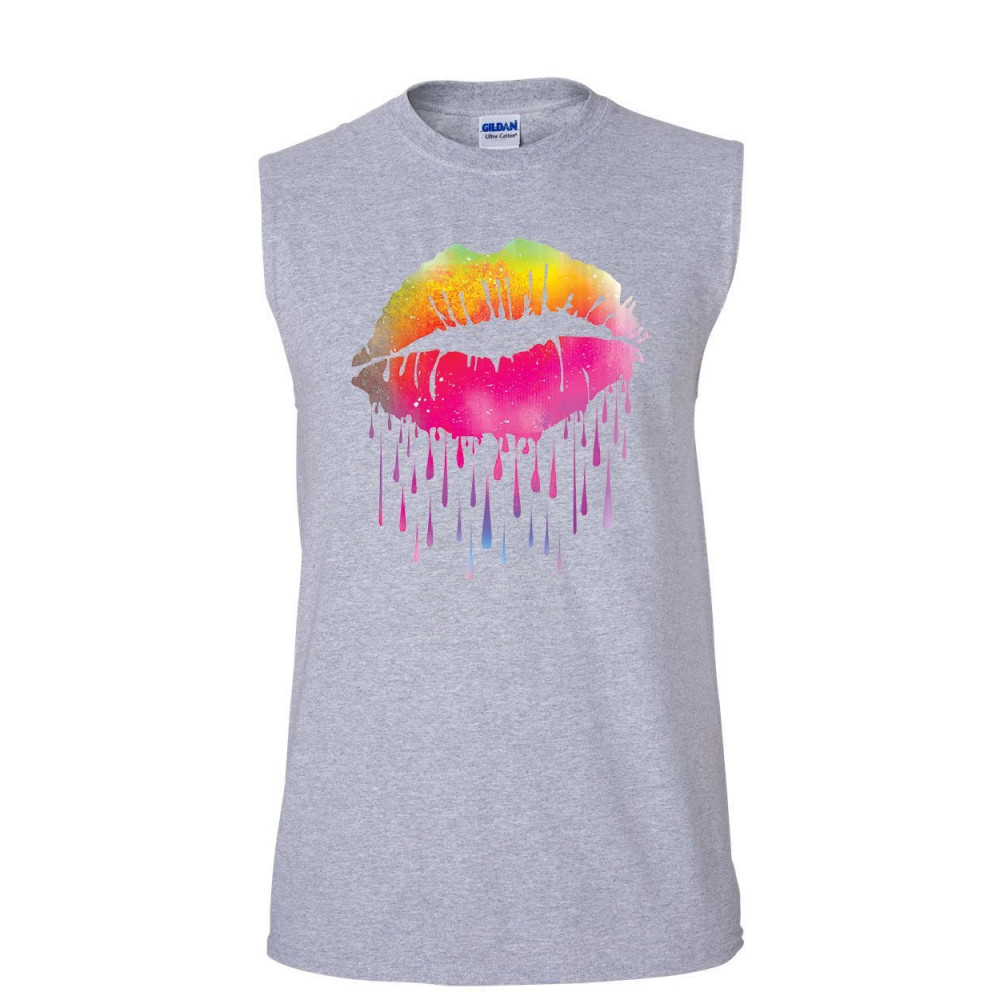 DRIPPING NEON LIPS muscle shirt lips like sugar kiss love sexy melt sleeveless gray