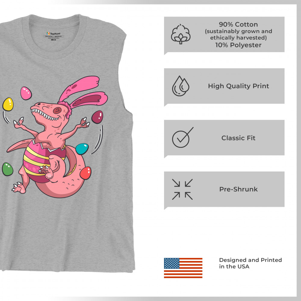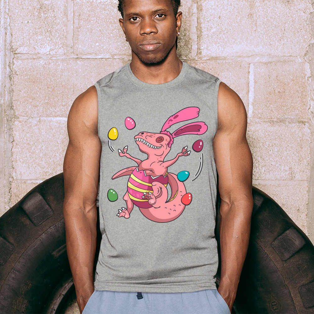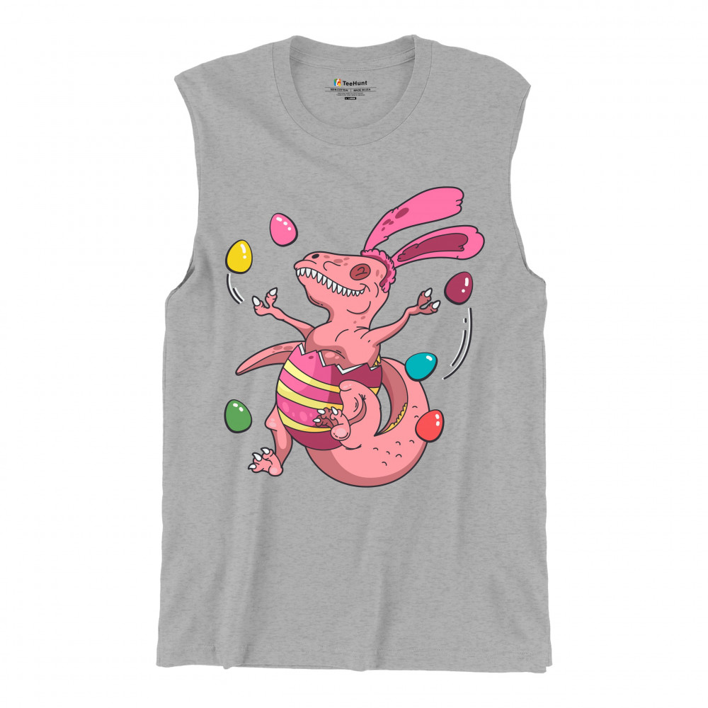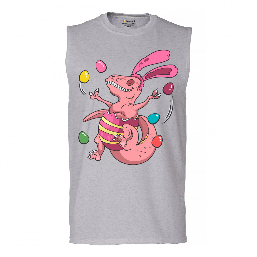 EASTER EGG T-REX muscle shirt happy easter bunny dinosaur egg hunt men's gray