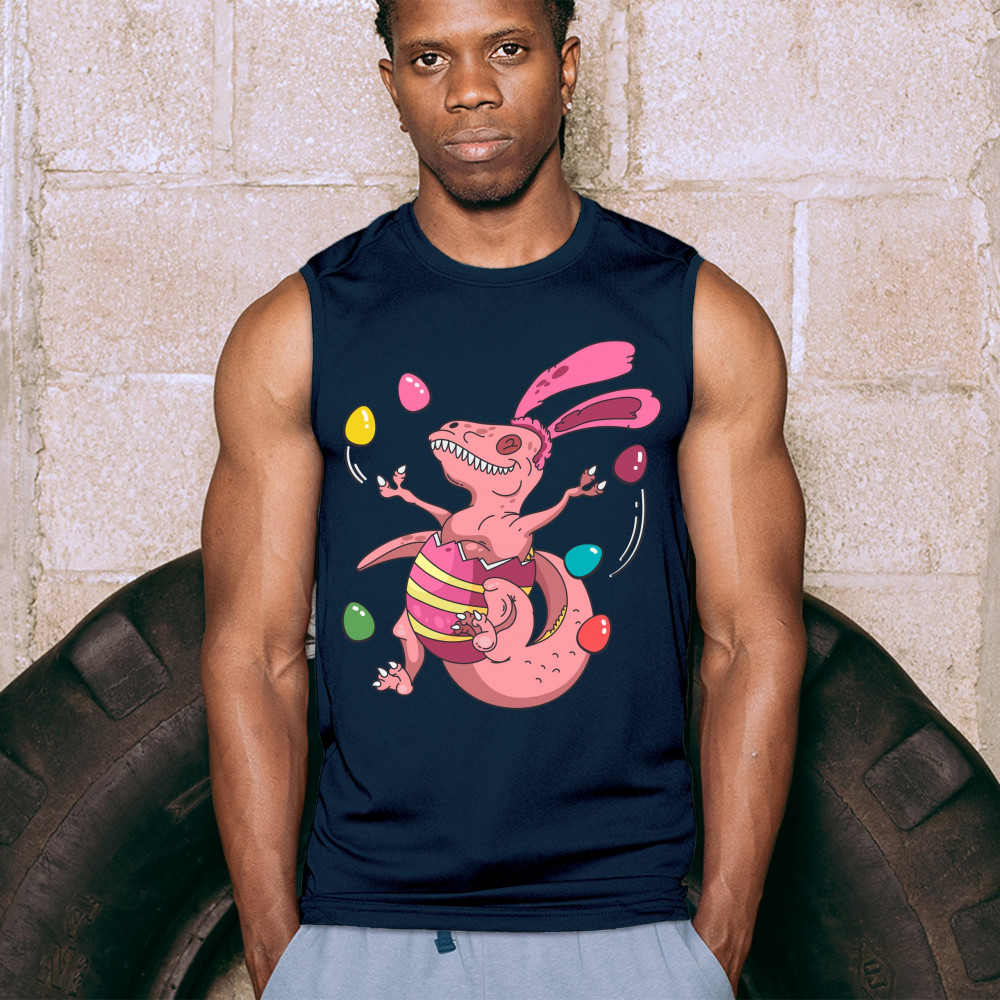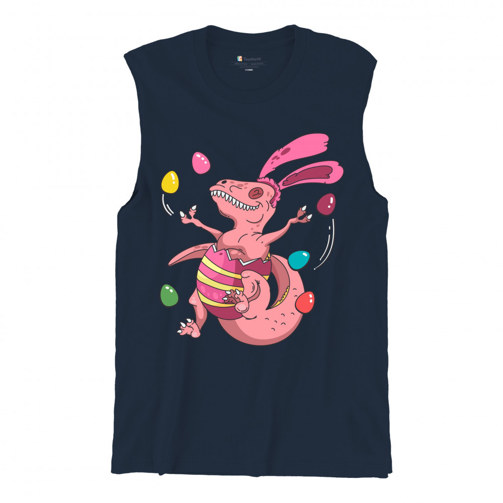 EASTER EGG T-REX muscle shirt happy easter bunny dinosaur egg hunt men's navy blue
