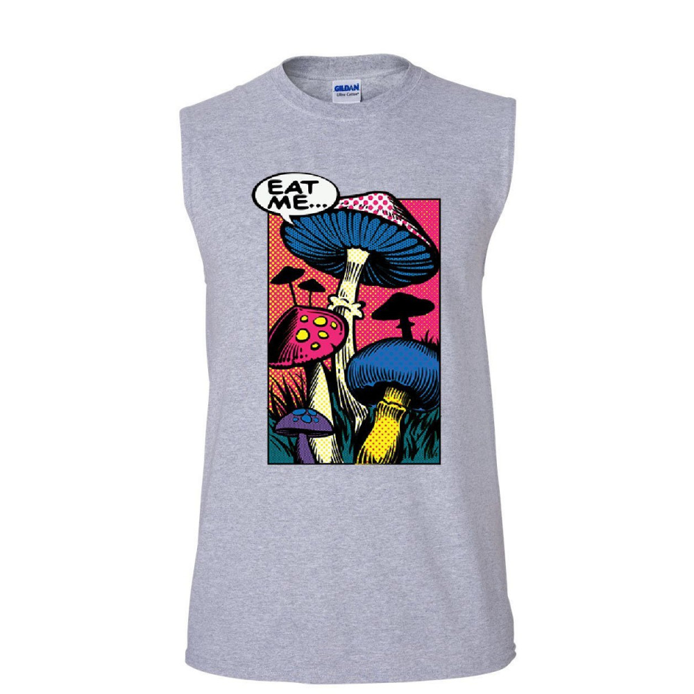 EAT ME... eat me muscle shirt shroom mushroom fungi psychedelic hallucinations sleeveless gray
