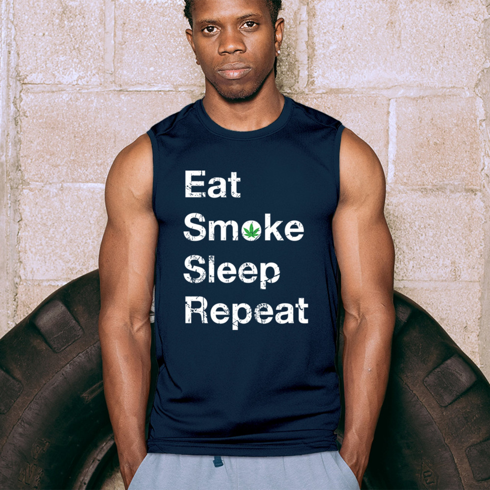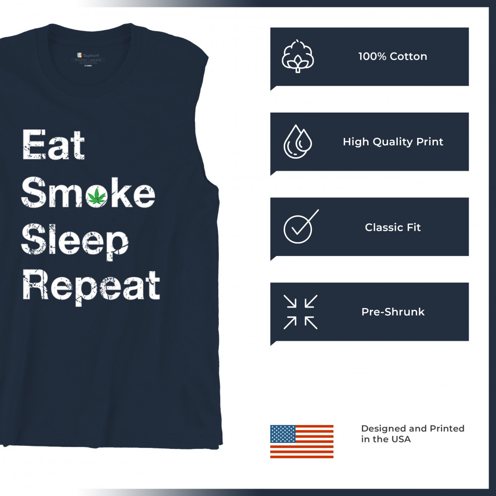 Eat Smoke Sleep Repeat design with weed leaf humor. Great for 420 fans, stoners, sesh lovers, smokers, and relaxed cannabis vibes.