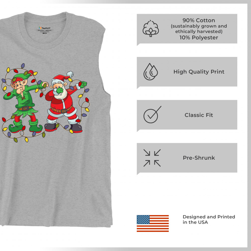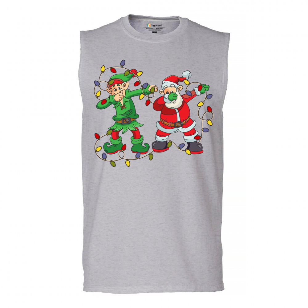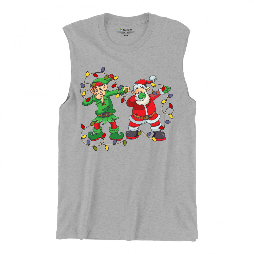 ELF AND SANTA CLAUS DAB DANCING muscle shirt merry and bright christmas men's gray