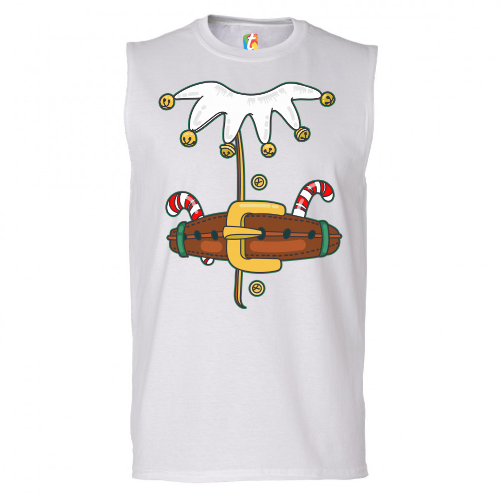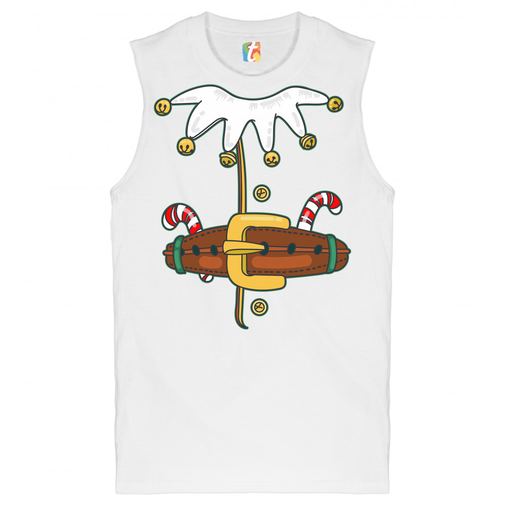 ELF COSTUME muscle shirt merry christmas naughty or nice xmas men's white