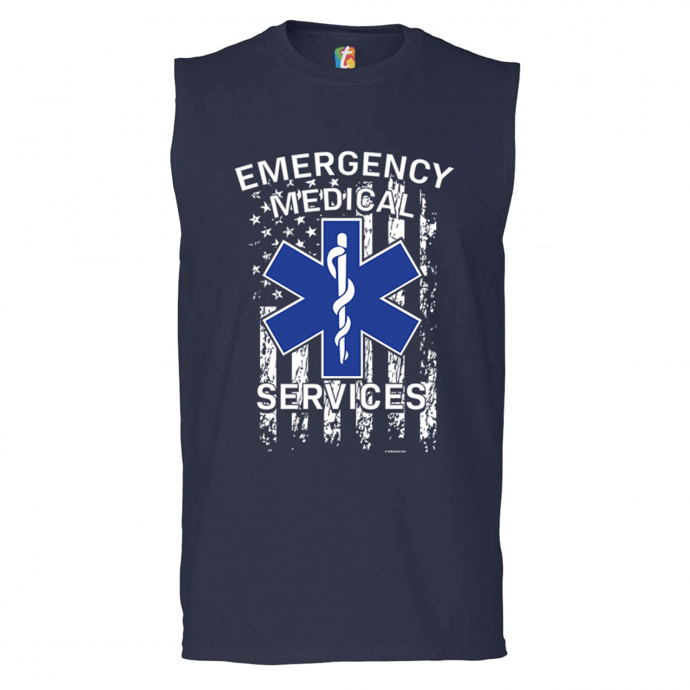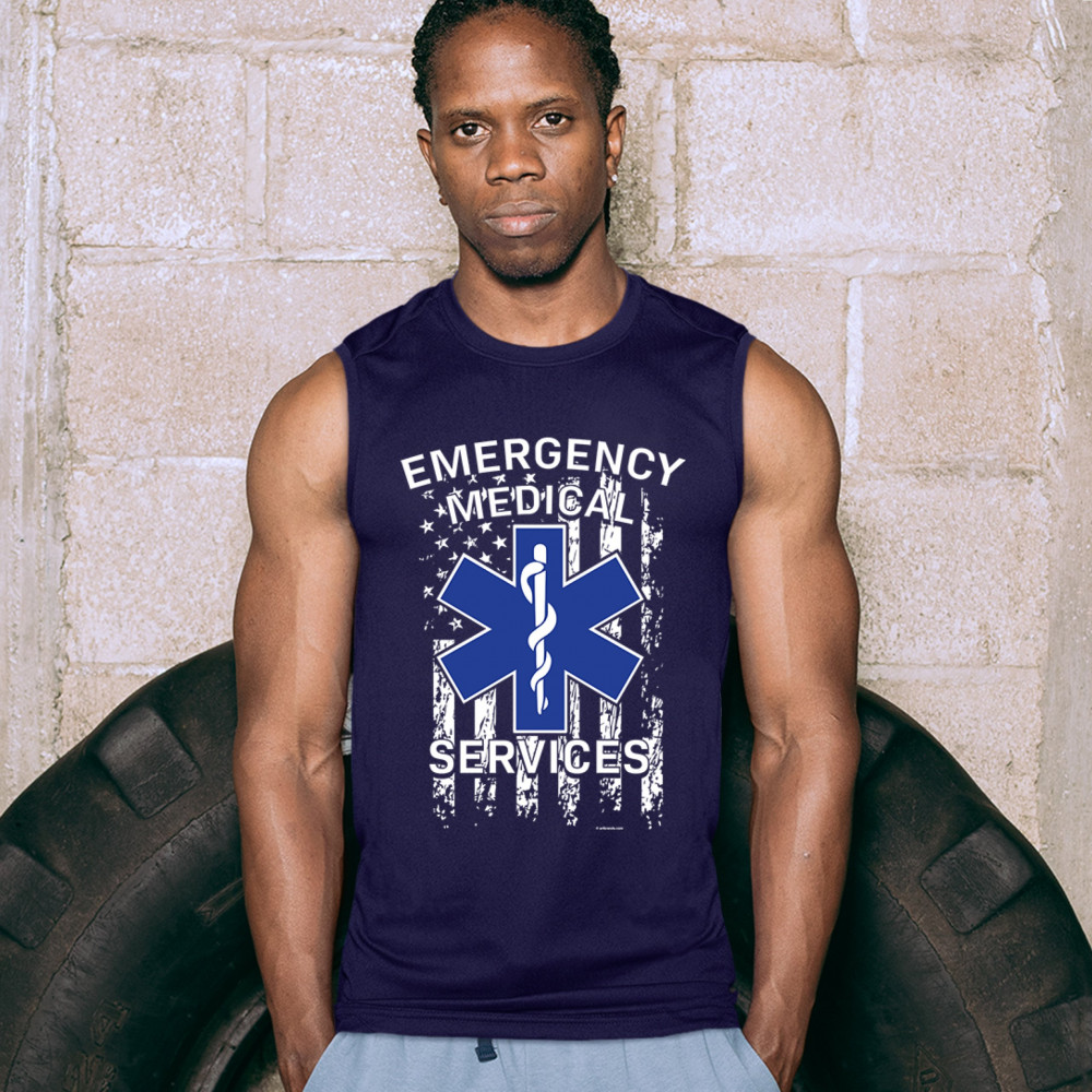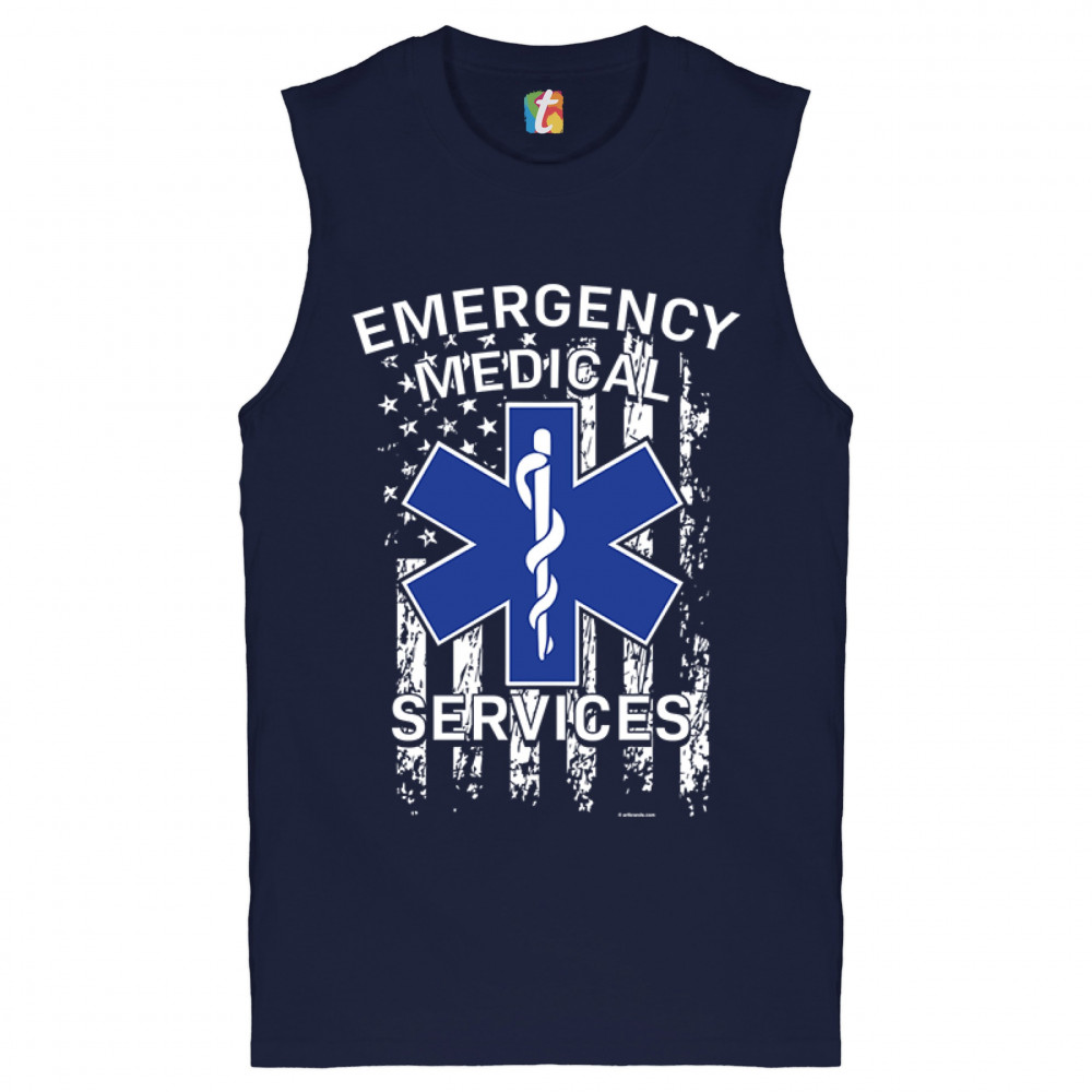EMERGENCY MEDICAL SERVICES muscle shirt american flag star of life ems men's navy blue