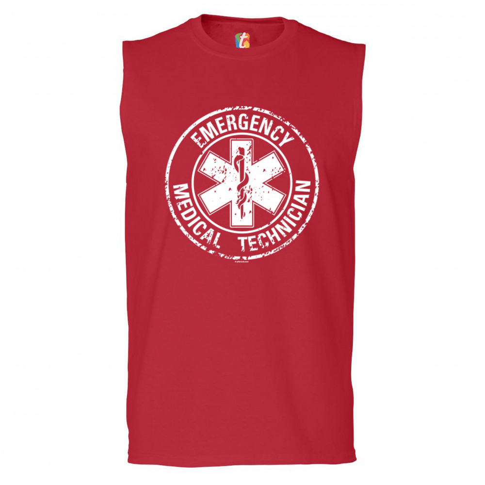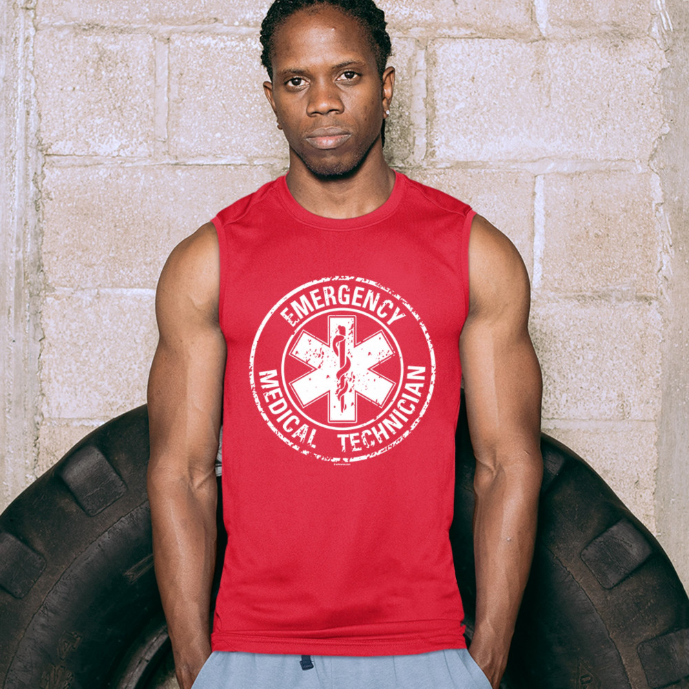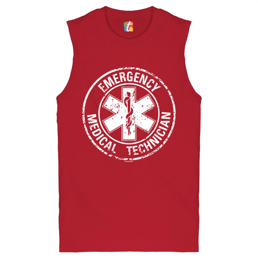 EMERGENCY MEDICAL TECHNICIAN muscle shirt emt distressed star of life men's red