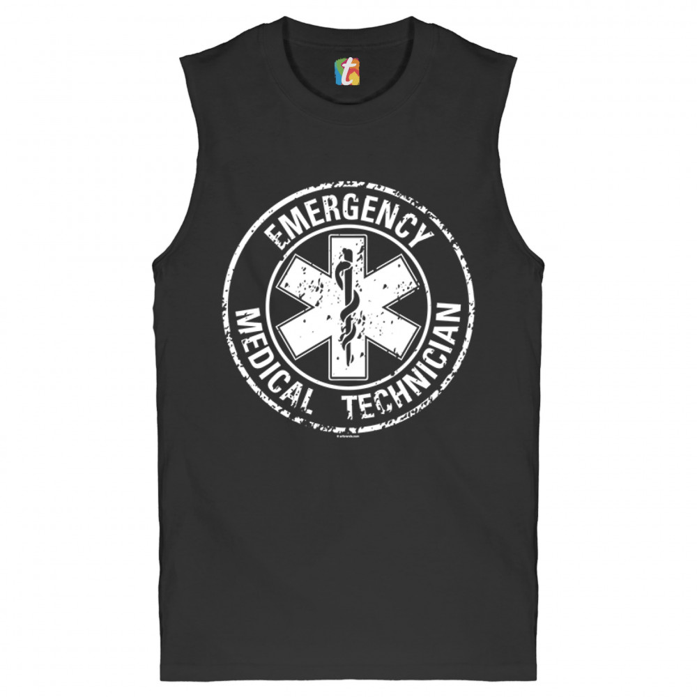EMERGENCY MEDICAL TECHNICIAN muscle shirt emt distressed star of life men's black
