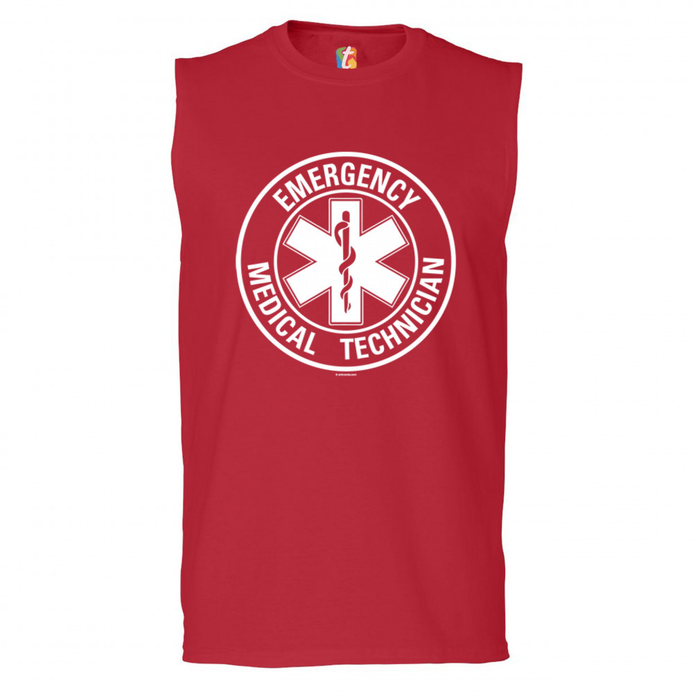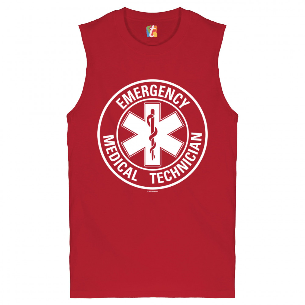 EMERGENCY MEDICAL TECHNICIAN muscle shirt star of life first responder men's red