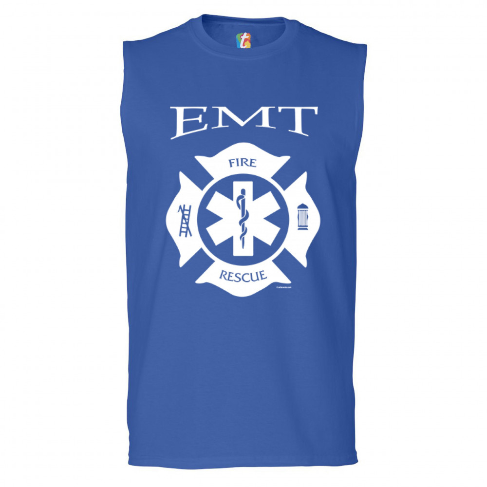 EMT FIRE AND RESCUE muscle shirt emergency first responder ems medic men's royal blue