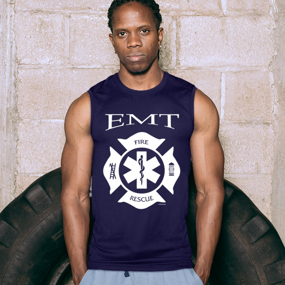 EMT FIRE AND RESCUE muscle shirt emergency first responder ems medic men's navy blue