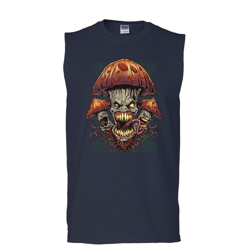 EVIL MUSHROOMS muscle shirt halloween hallucinations nightmare spooky sleeveless navy blue