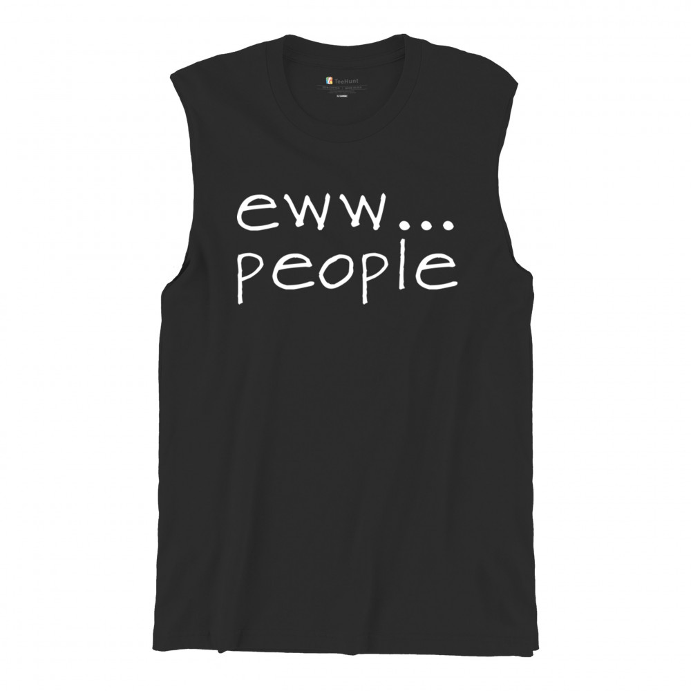 Embrace your personal space with a design that says 'less people, more peace' in a humorous, minimalist style.