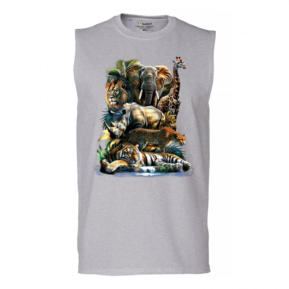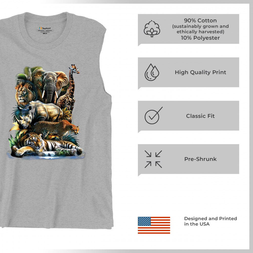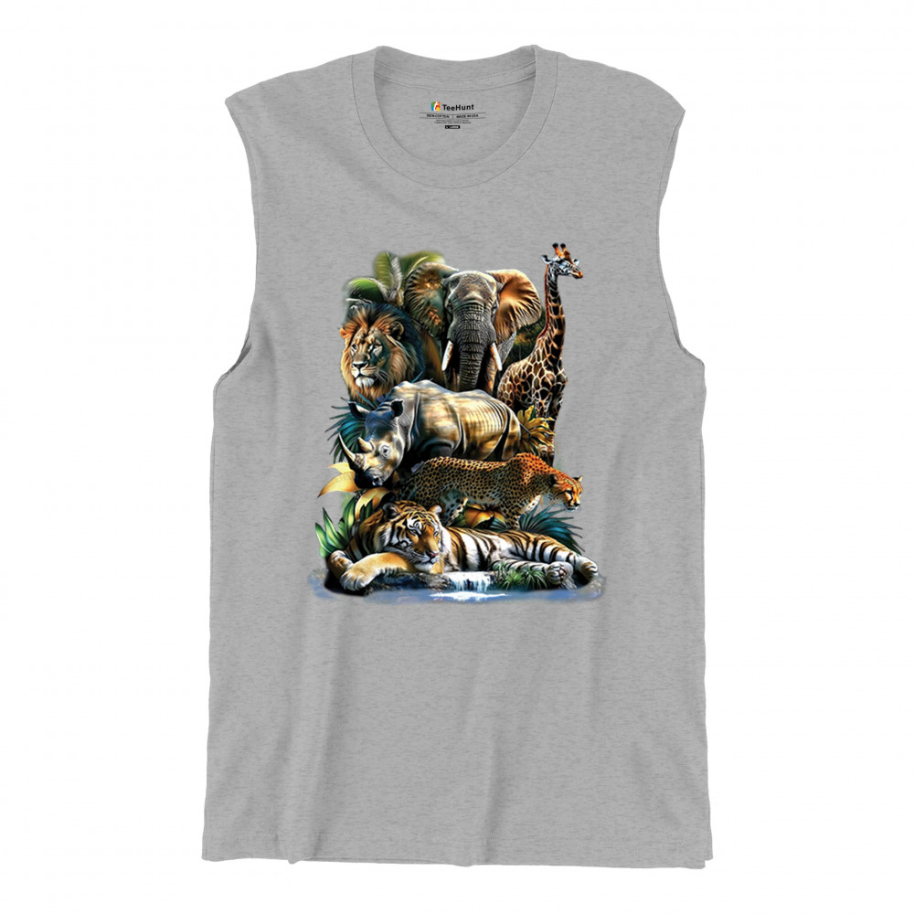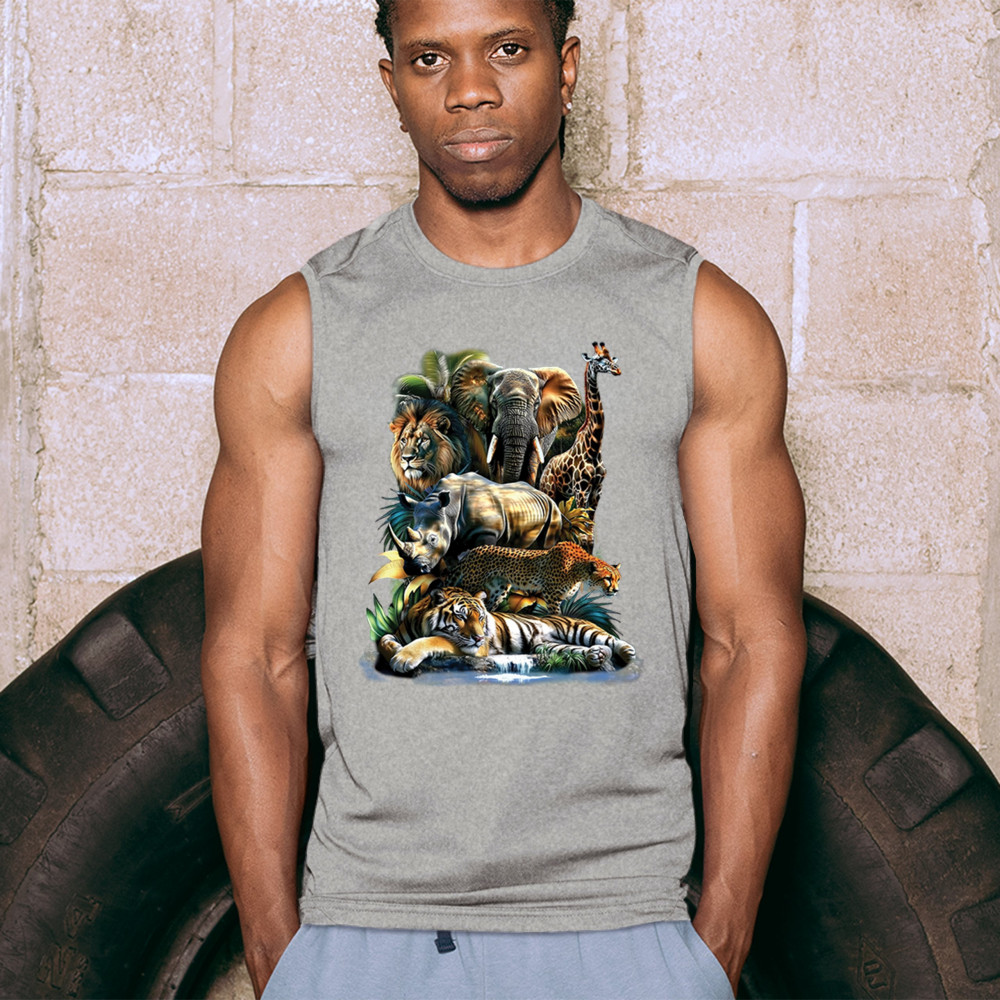 Wildlife design with lion, tiger, giraffe, rhino, cheetah, and elephant. Perfect for animal lovers and safari fans who embrace nature’s fierce spirit.