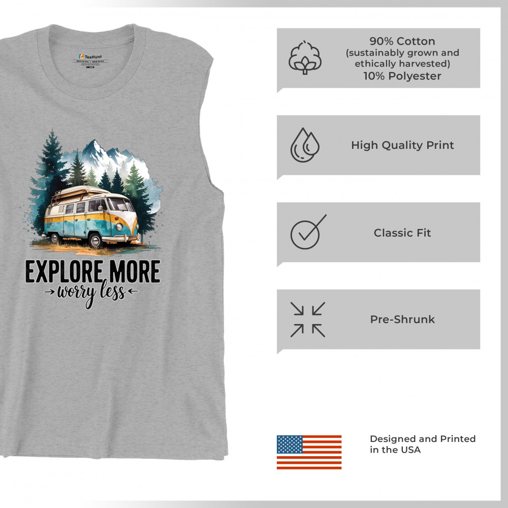Explore More Worry Less is made for the outdoor soul—celebrating trail lovers, weekend hikers, and national park explorers. Whether you're into off-grid adventures or glamping with family, this design fits your lifestyle. Embrace nature, campfire moments, and wilderness vibes with a look built for your next escape.