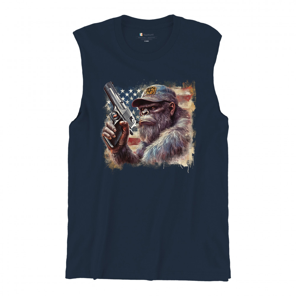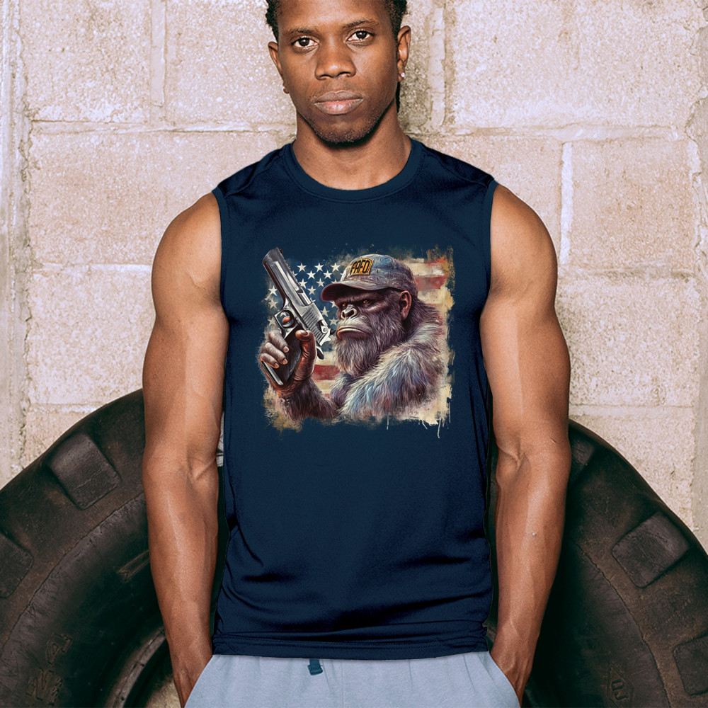 Show your Second Amendment pride with this bold patriotic gorilla design featuring the American flag and a firearm. Perfect for gun rights supporters, veterans, and freedom lovers.
