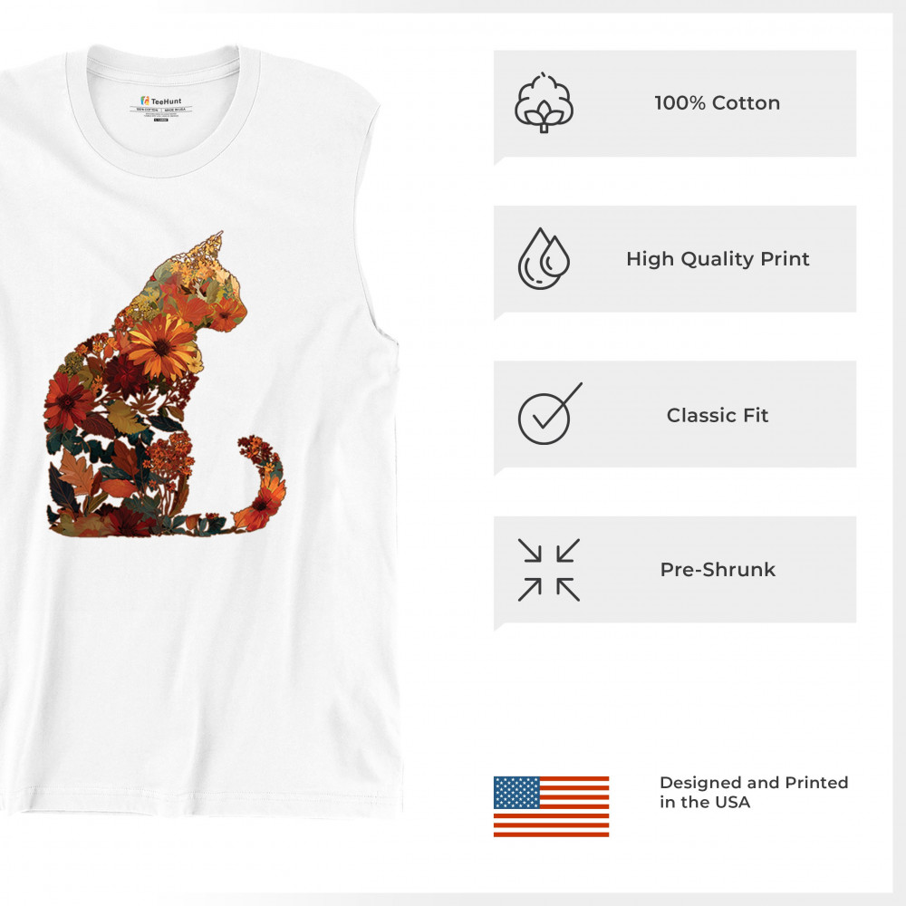 Bring autumn charm to your wardrobe with this cozy cat design filled with fall leaves and florals. Perfect for pet lovers, rustic farmhouse style, pumpkin patch outings, and fall festivals, it’s a unique way to showcase both your love of cats and seasonal harvest vibes.