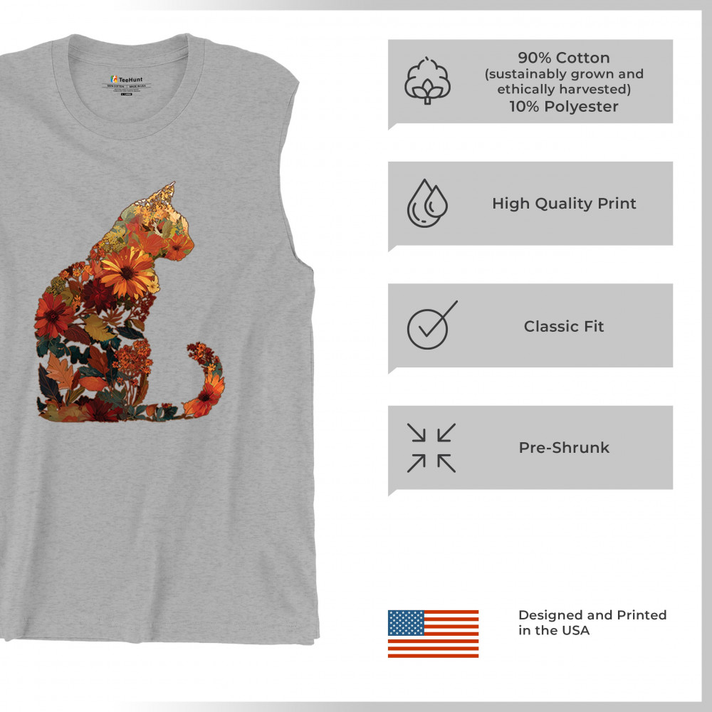 Bring autumn charm to your wardrobe with this cozy cat design filled with fall leaves and florals. Perfect for pet lovers, rustic farmhouse style, pumpkin patch outings, and fall festivals, it’s a unique way to showcase both your love of cats and seasonal harvest vibes.