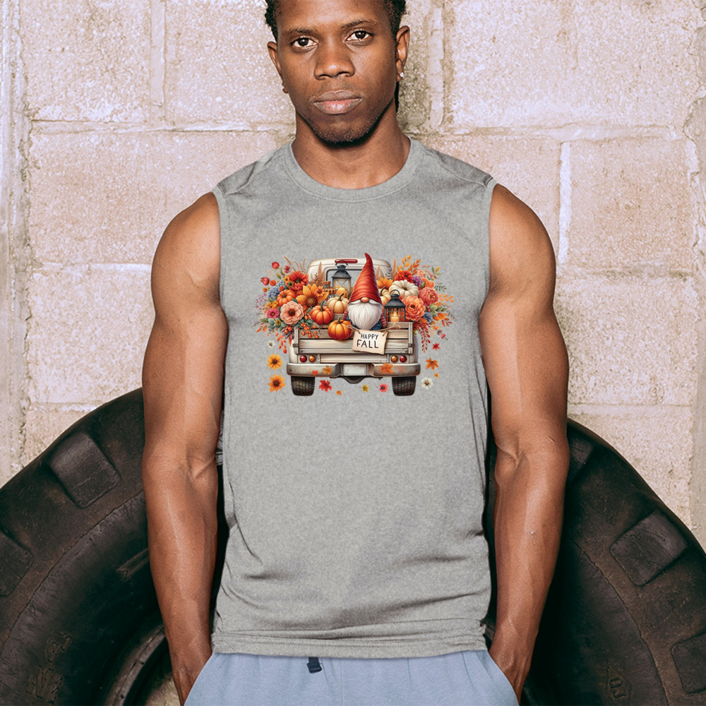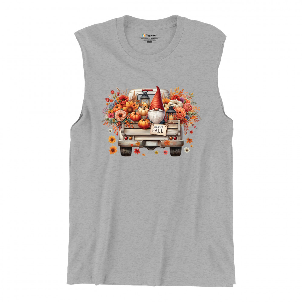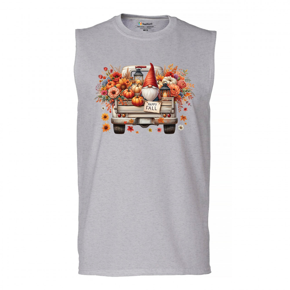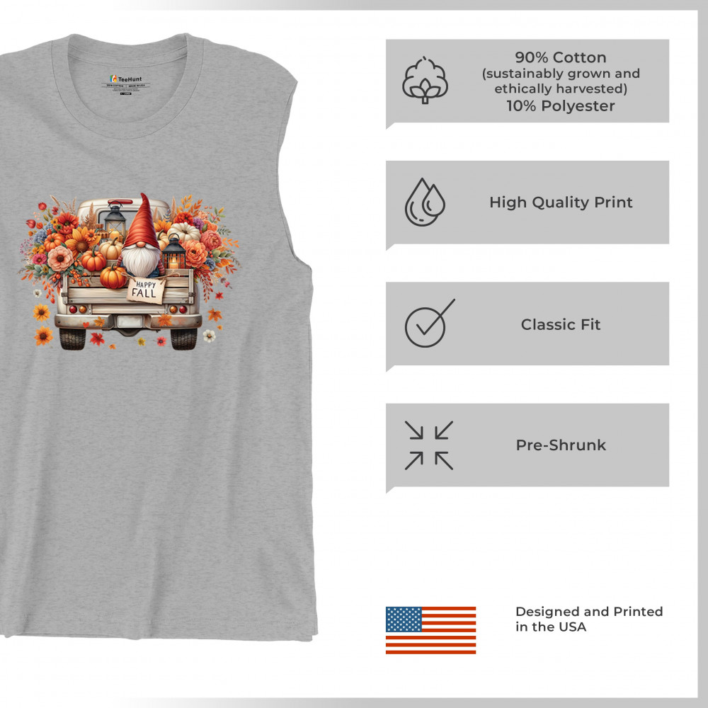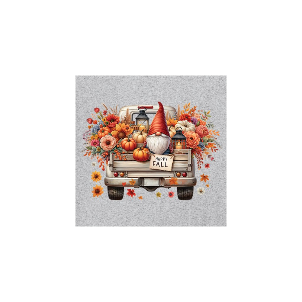 Rustic gnome truck design with pumpkins, wildflowers, and lantern glow. Perfect for Thanksgiving Day, farmhouse harvest, and cozy autumn style.
