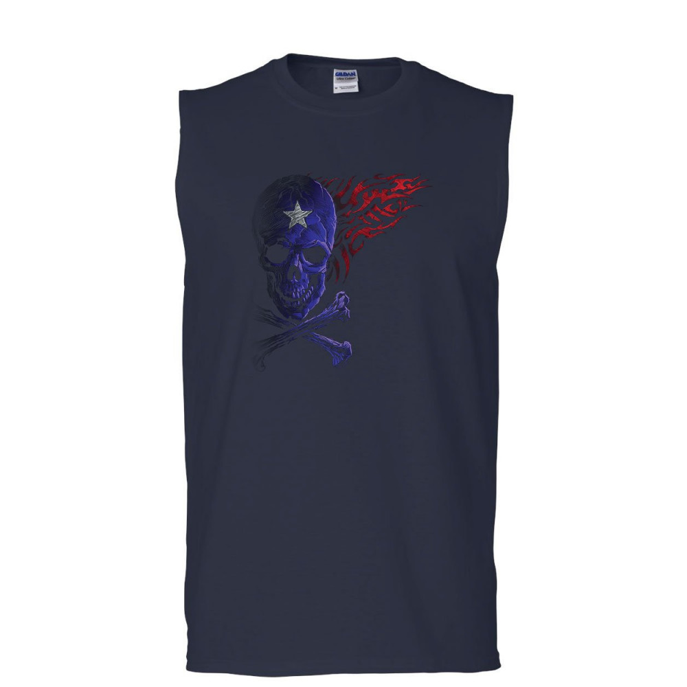 SKULL FACE WITH CROSSBONES fantacycle skull crossbones muscle shirt american pride tribal flame sleeveless navy blue