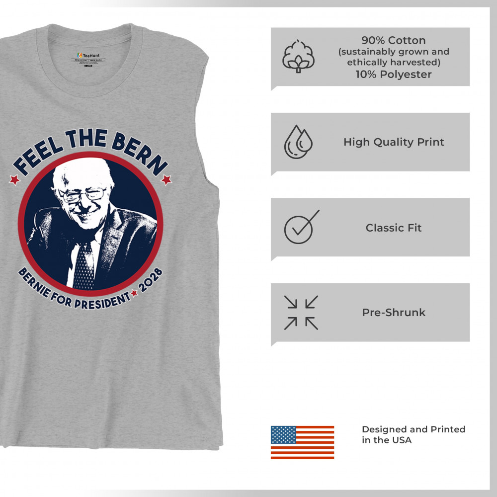 Show your commitment to democratic reform with this "Feel the Bern – Bernie for President 2028" design. Featuring Bernie Sanders’ portrait and patriotic colors, it’s perfect for political events, marches, or campaign volunteering. Wear it with pride at rallies, protests, or voter registration drives to back the progressive movement.