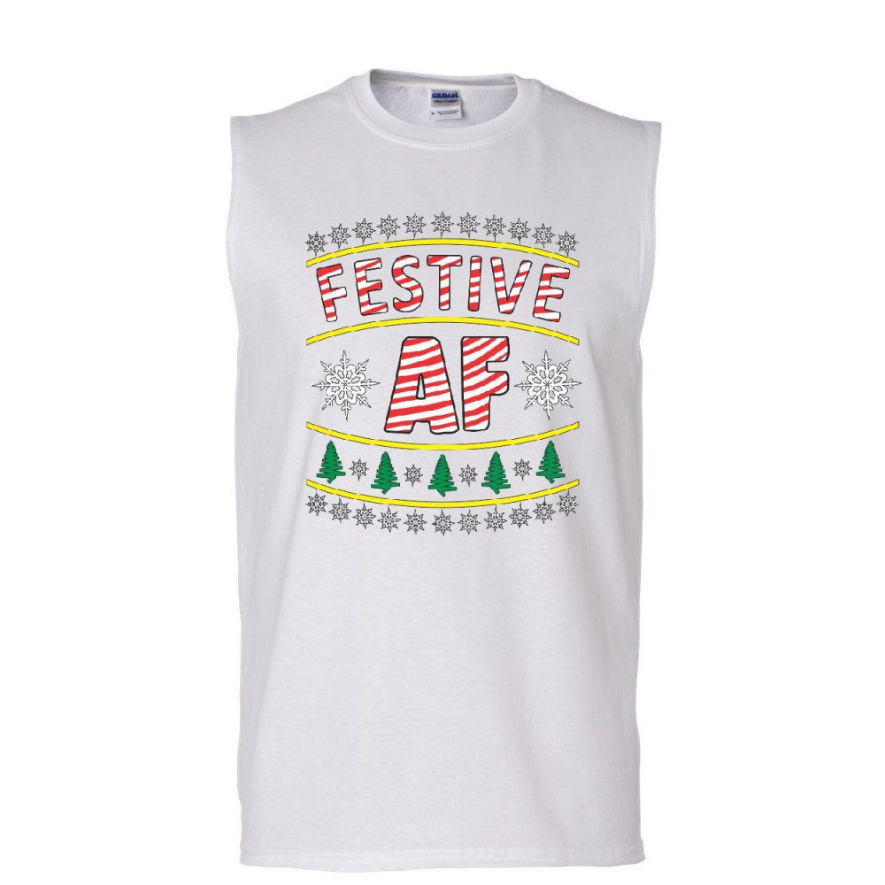 FESTIVE AF muscle shirt merry christmas xmas funny holiday ho ho ho sleeveless white