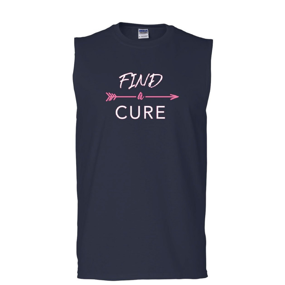 FIND A CURE muscle shirt october breast cancer awareness support hope sleeveless navy blue