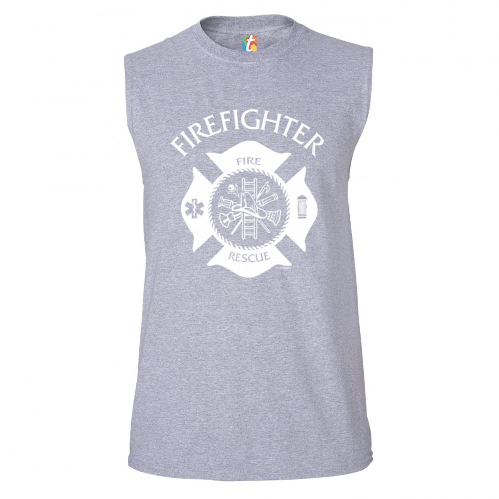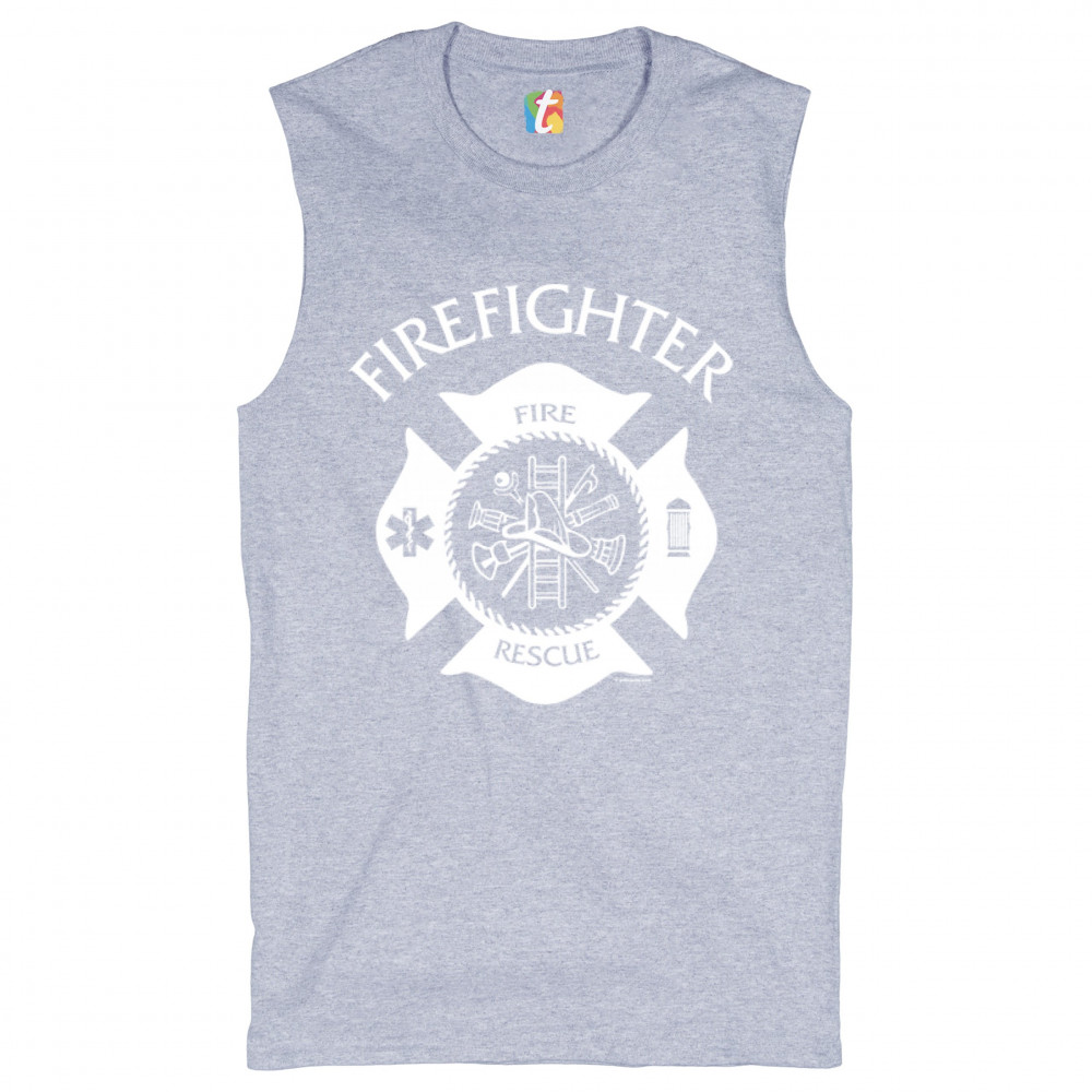 FIREFIGHTER EMBLEM muscle shirt fire and rescue first responders men's gray
