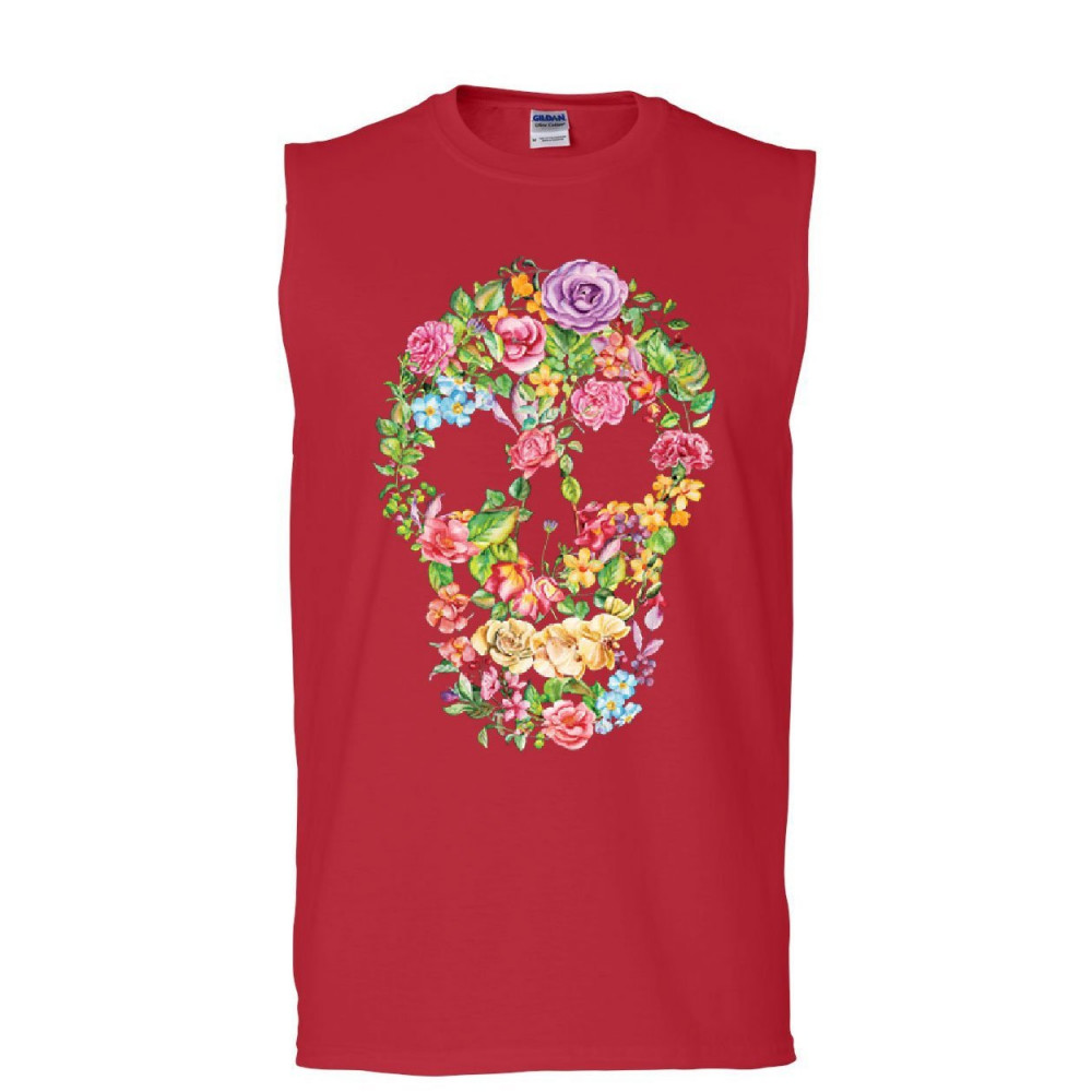 FLOWER SKULL muscle shirt sugar skull calavera dia de los muertos sleeveless red