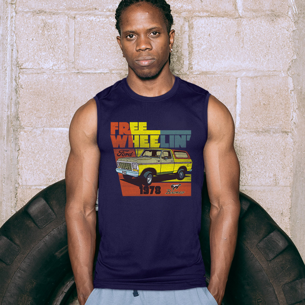 FORD BRONCO 1978 muscle shirt free wheelin' offroad truck suv licensed men's navy blue