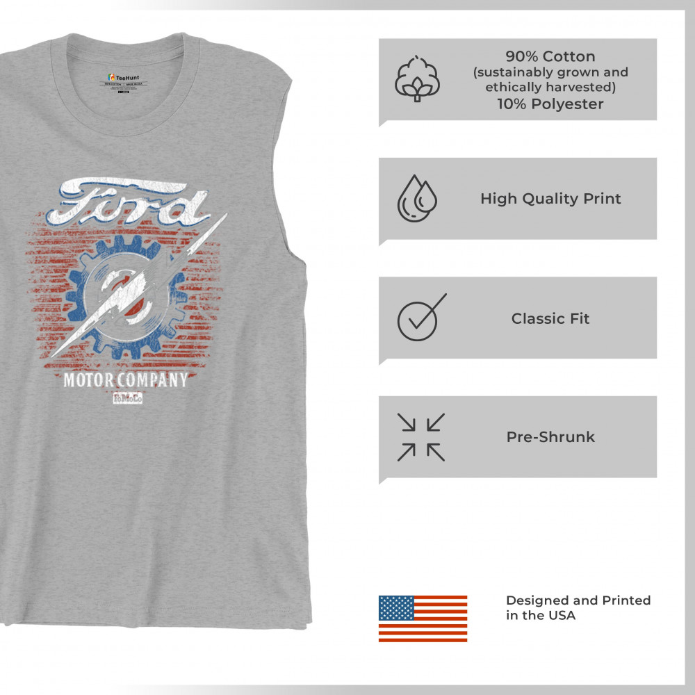 This officially licensed Ford Motor Company design showcases a distressed patriotic theme, bold lightning bolt, and vintage industrial gear emblem, symbolizing the power of American automotive innovation. Perfect for classic car lovers, muscle car enthusiasts, and Ford history fans, this design pays tribute to high-performance heritage, FoMoCo branding, and the legacy of American muscle.
