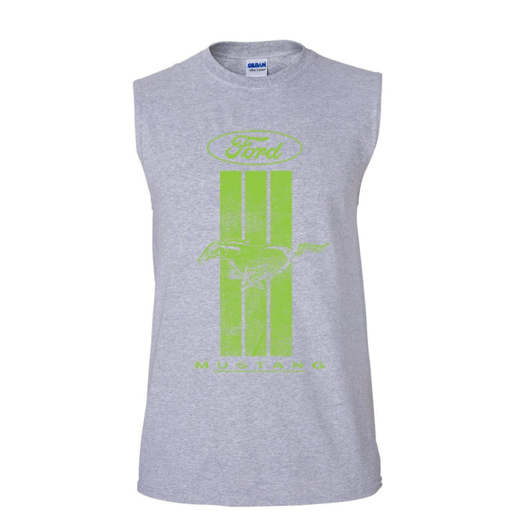 FORD MUSTANG GREEN STRIPE muscle shirt classic american muscle car sleeveless gray