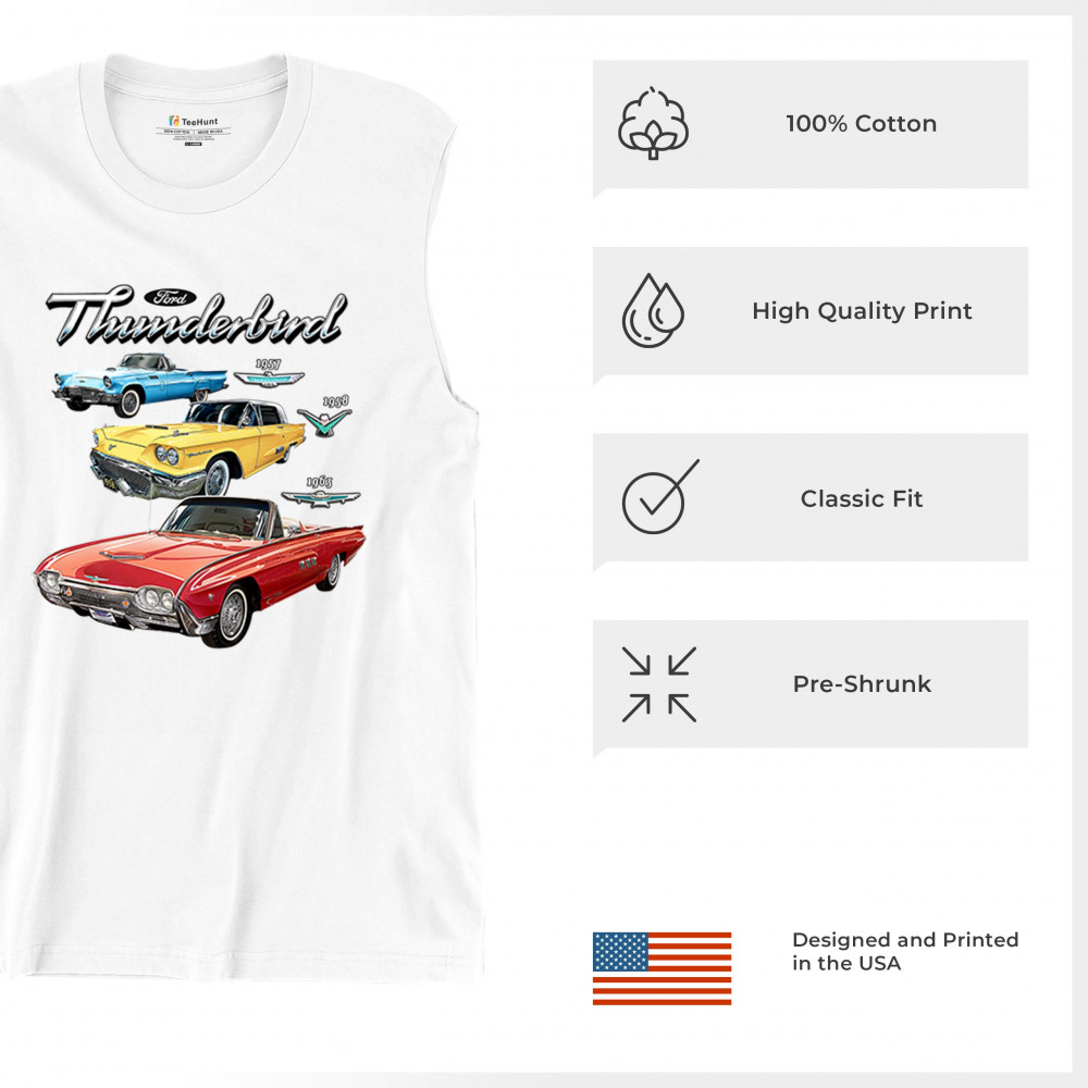 Iconic Ford Thunderbird design with 1957, 1958, and 1963 models. A vintage tribute for car collectors and American muscle fans.