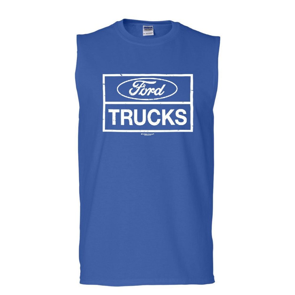 DISTRESSED FORD TRUCKS muscle shirt f150 american pick up sleeveless blue