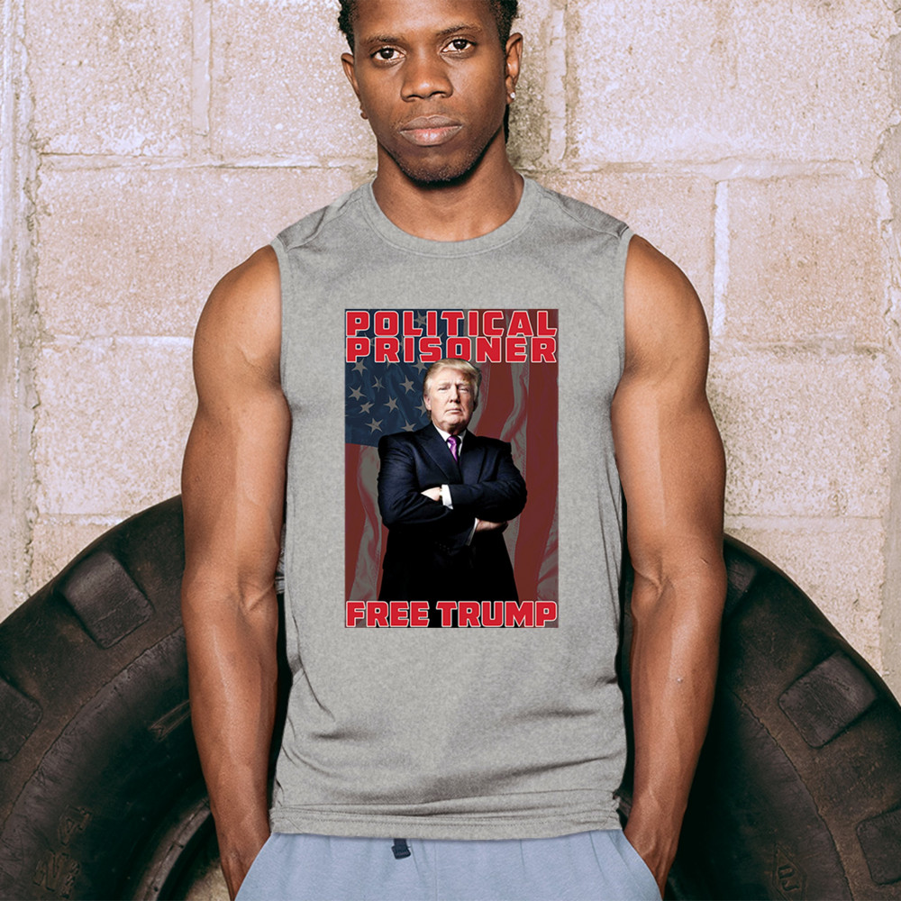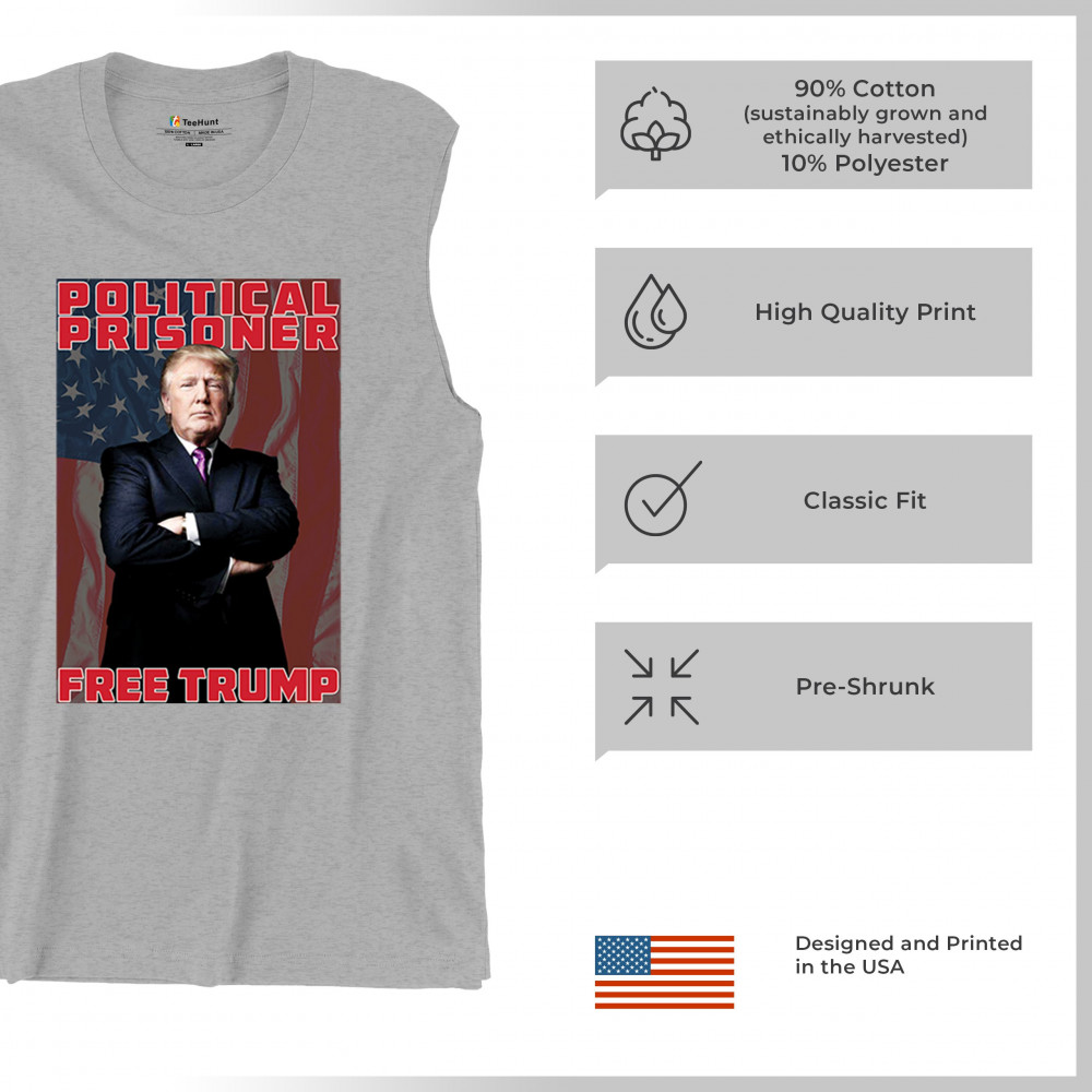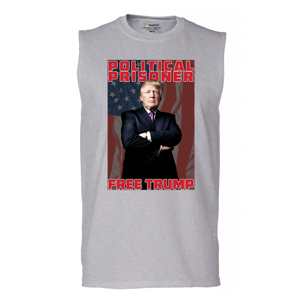 Show your support with the "Political Prisoner Free Trump" design, featuring Trump against an American flag. Perfect for conservative patriots and Trump supporters.