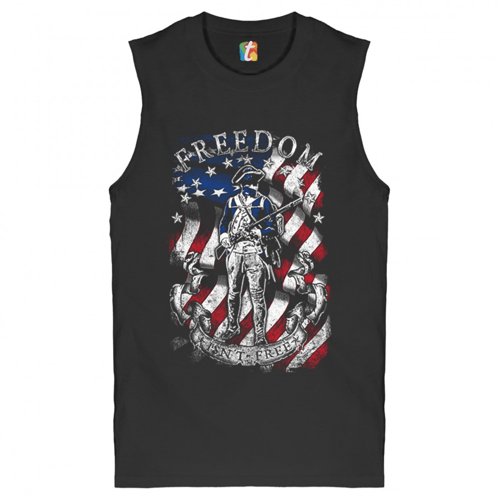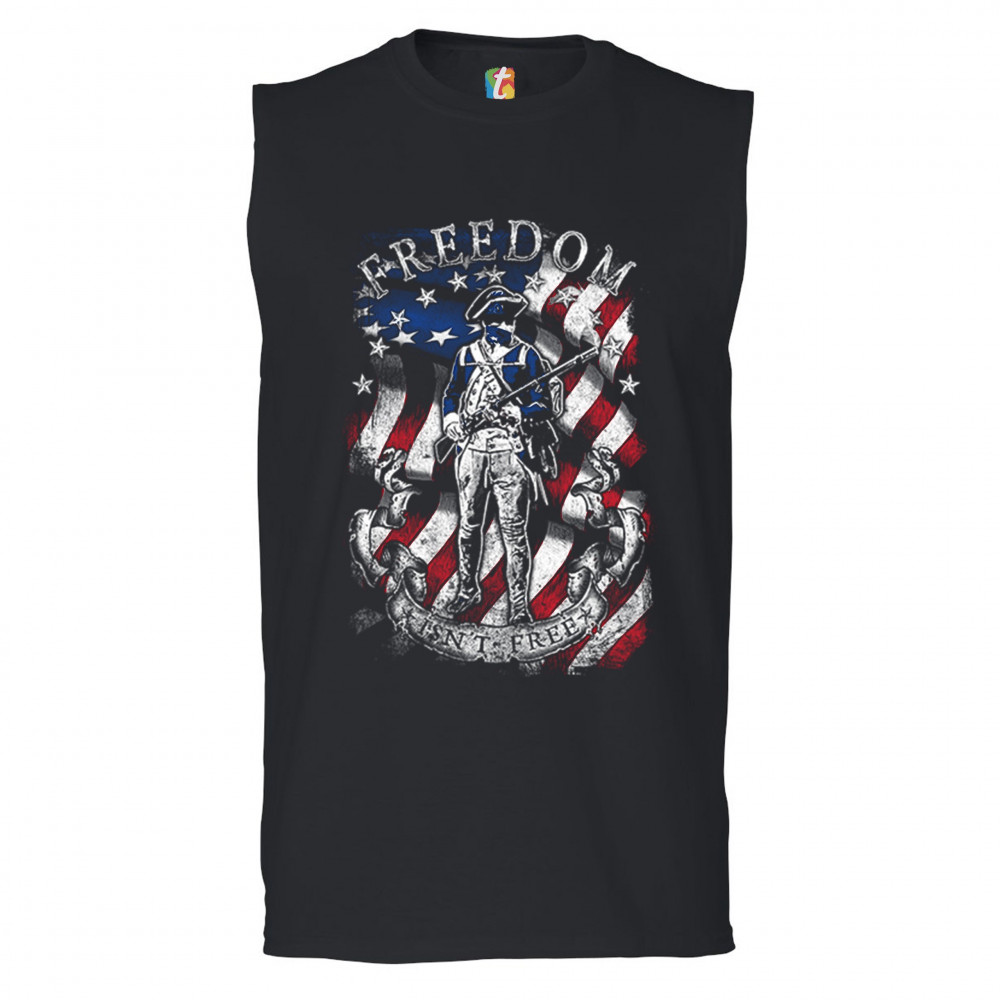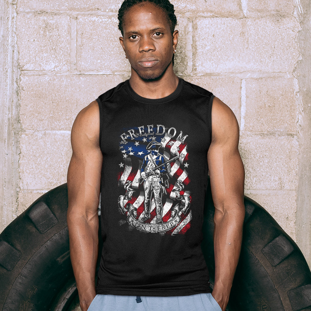 FREEDOM ISN'T FREE muscle shirt independence liberty american flag men's black