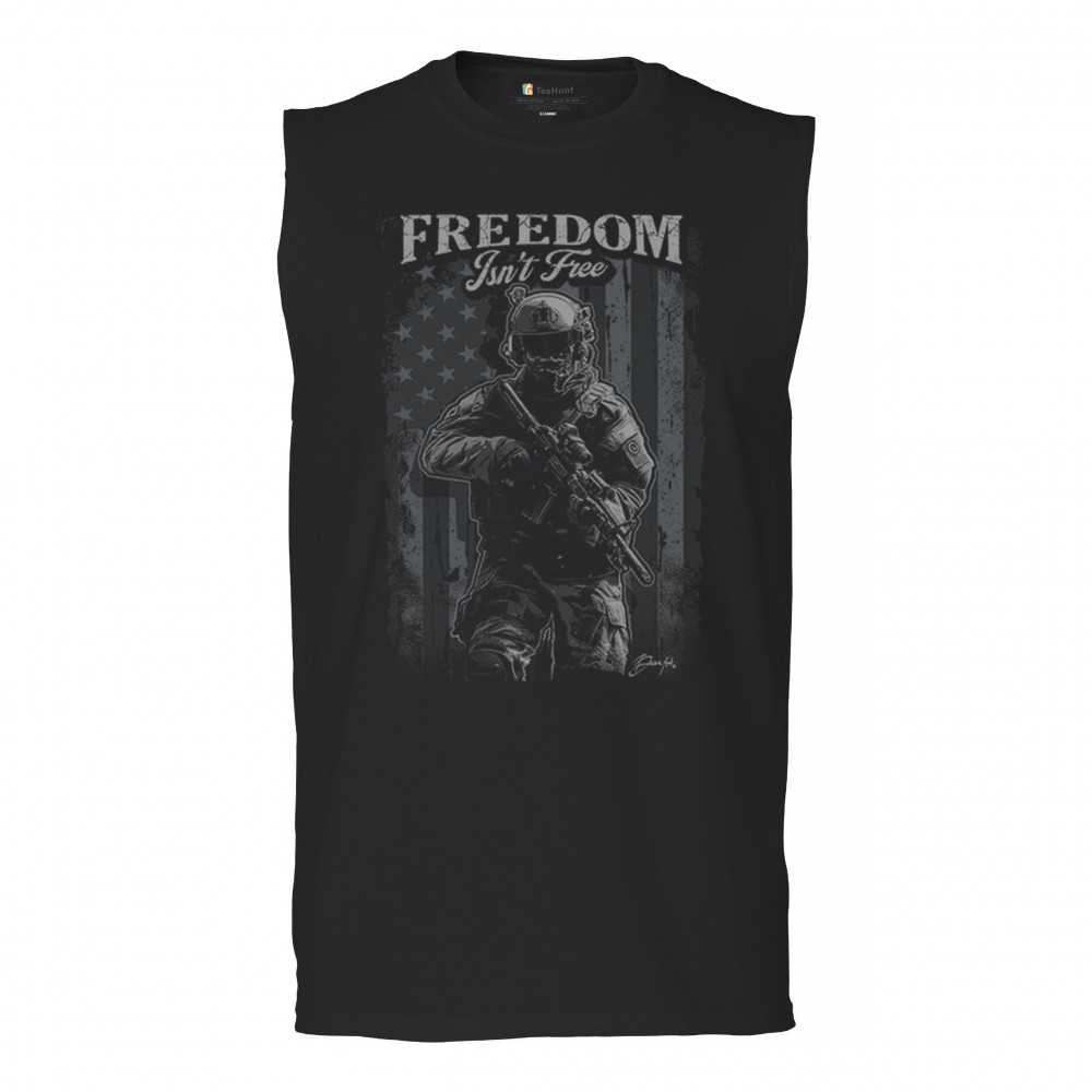 FREEDOM ISN'T FREE muscle shirt american hero patriotic soldier dd 214 men's black