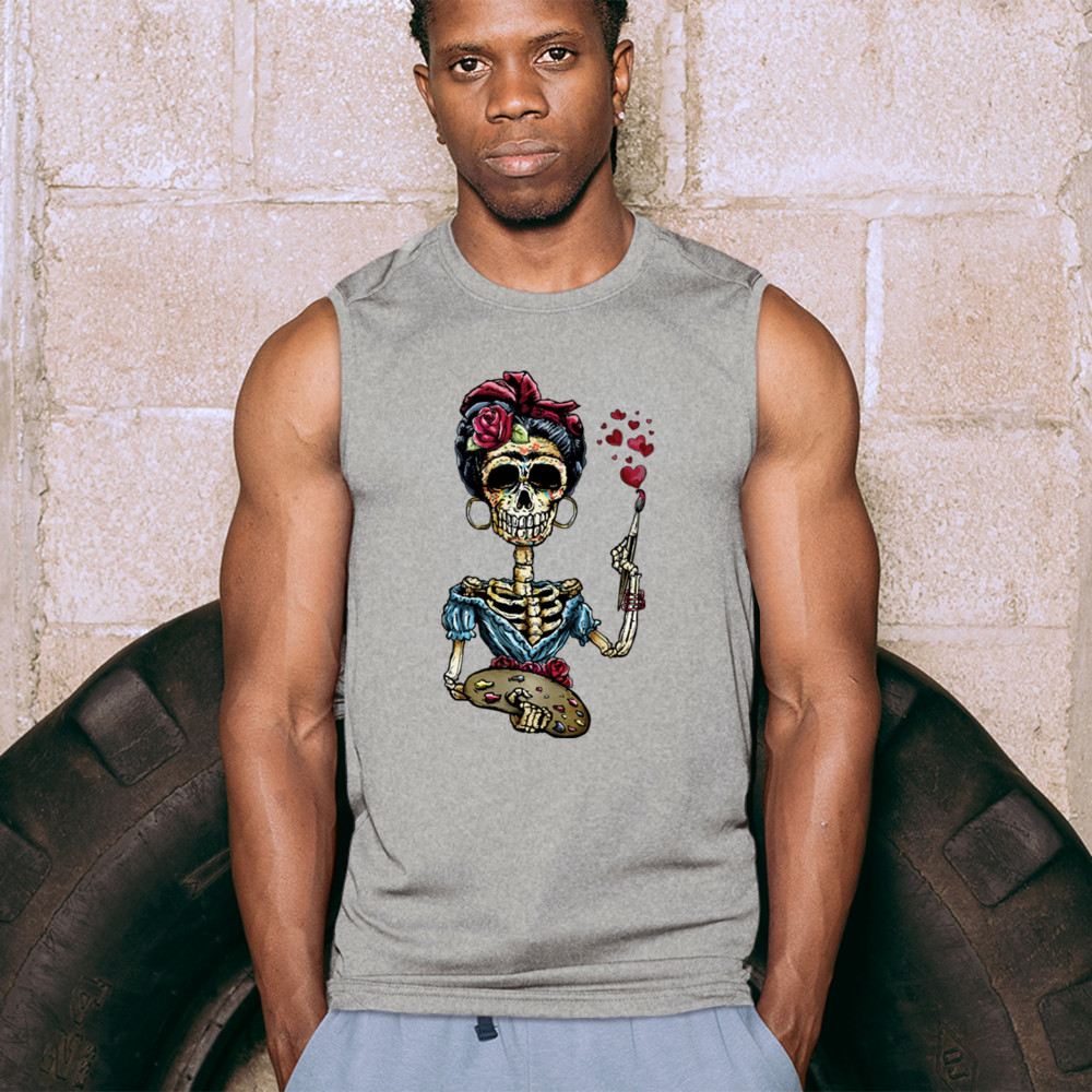 FRIDA KAHLO SUGAR SKULL muscle shirt calavera mexican day of the dead men's gray